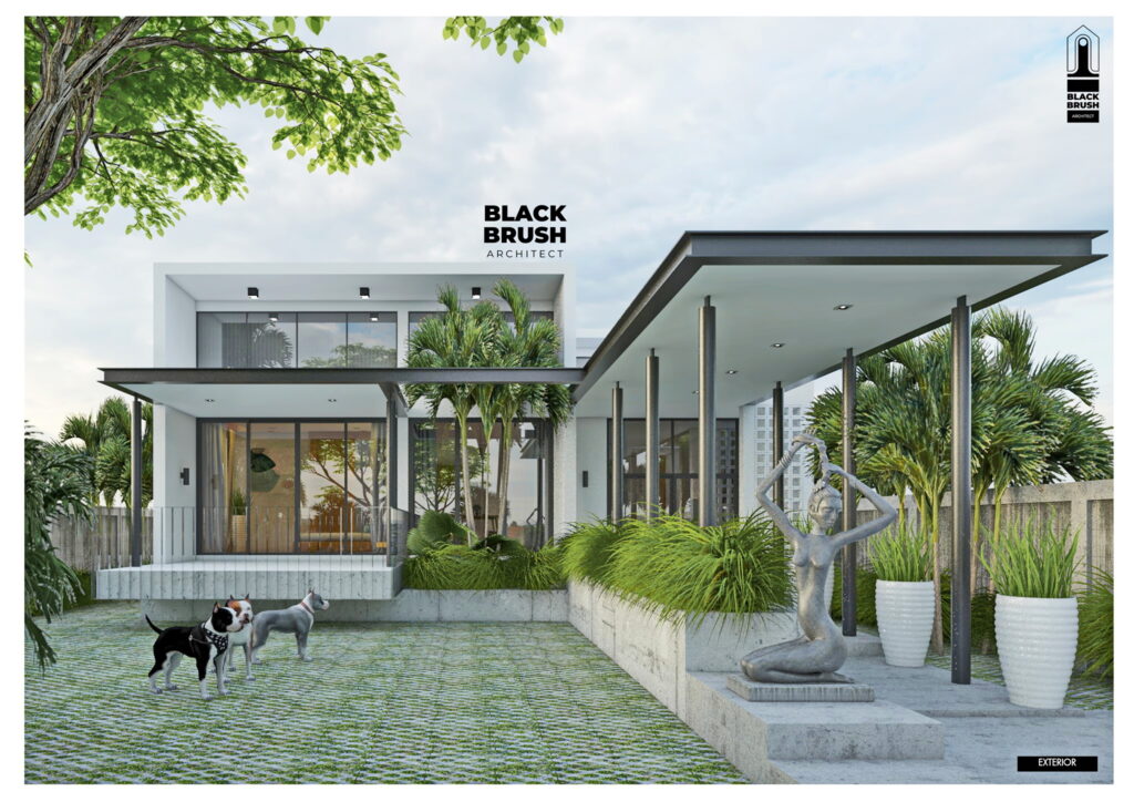 แบบบ้านโมเดิร์นทรงกล่อง ดีไซน์เปิดโล่ง บรรยากาศโปร่งกว้าง เชื่อมต่อจังหวะชีวิตกับพื้นที่สีเขียว