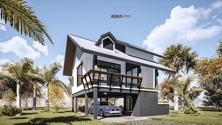 แบบบ้านสไตล์คอนเทมโพรารี ผลงานการออกแบบโดย MW Architect ผลงานบ้านที่ถูกออกแบบด้วยการผสานการออกแบบระหว่างบ้านที่ทันสมัยกับการออกแบบใต้ถุนยกสูงแบบบ้านไทย เป็นอีกหนึ่งไอเดียบ้านสวยที่เพื่อน ๆ ไม่ควรพลาดชมรายละเอียดกันเลยนะคะ