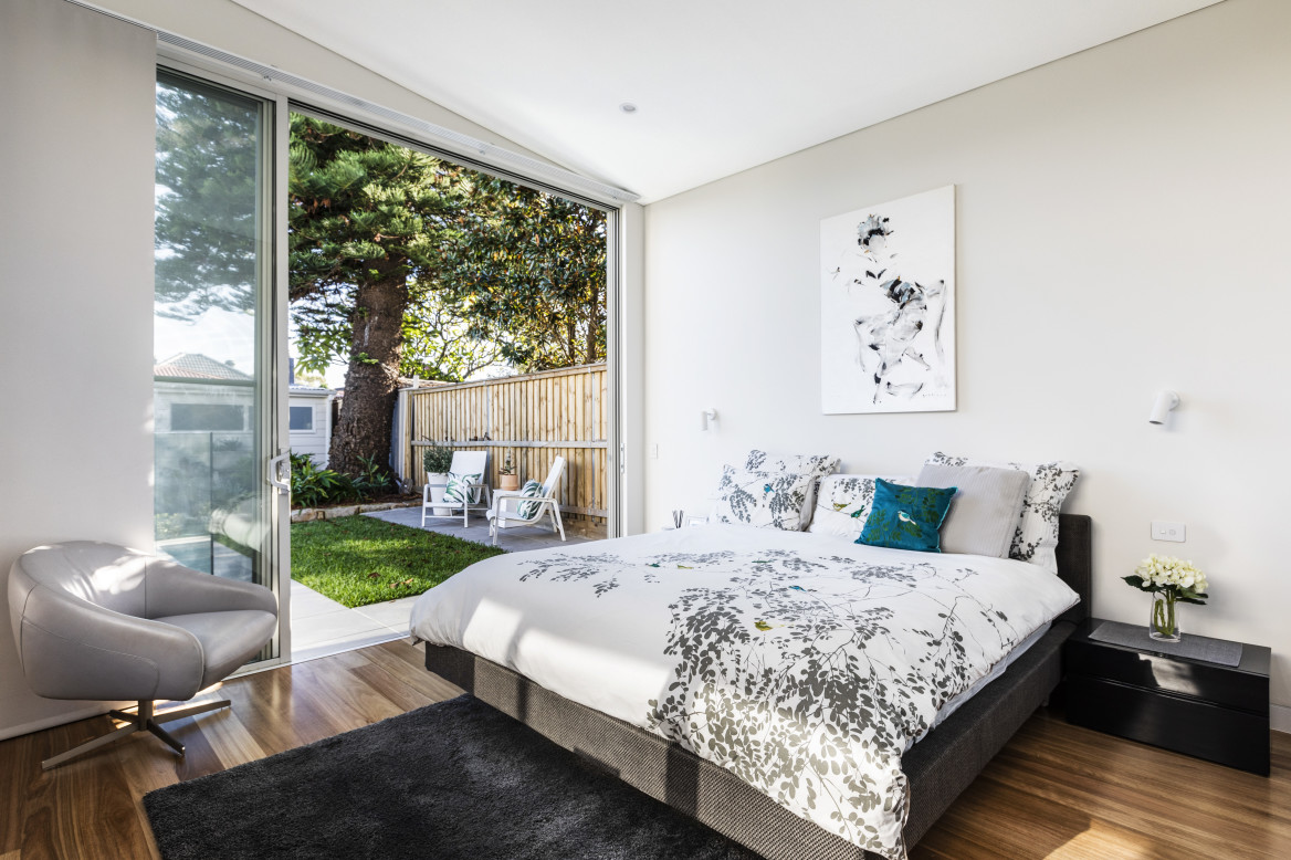 ขณะที่ห้องนอนก็จะมีลักษณะคล้ายกับห้องนั่งเล่น คือ จะมีประตูบานใหญ่ที่สามารถเปิดโล่ง และเชื่อมต่อกับพื้นที่สนามหลังบ้าน เพื่อให้บรรยากาศที่สบายนั่นเอง