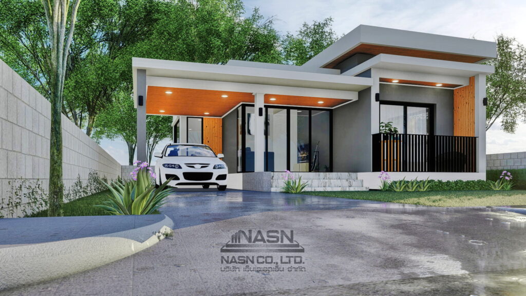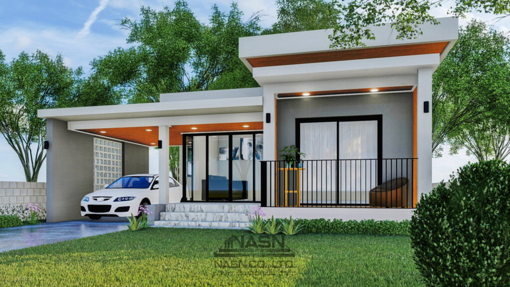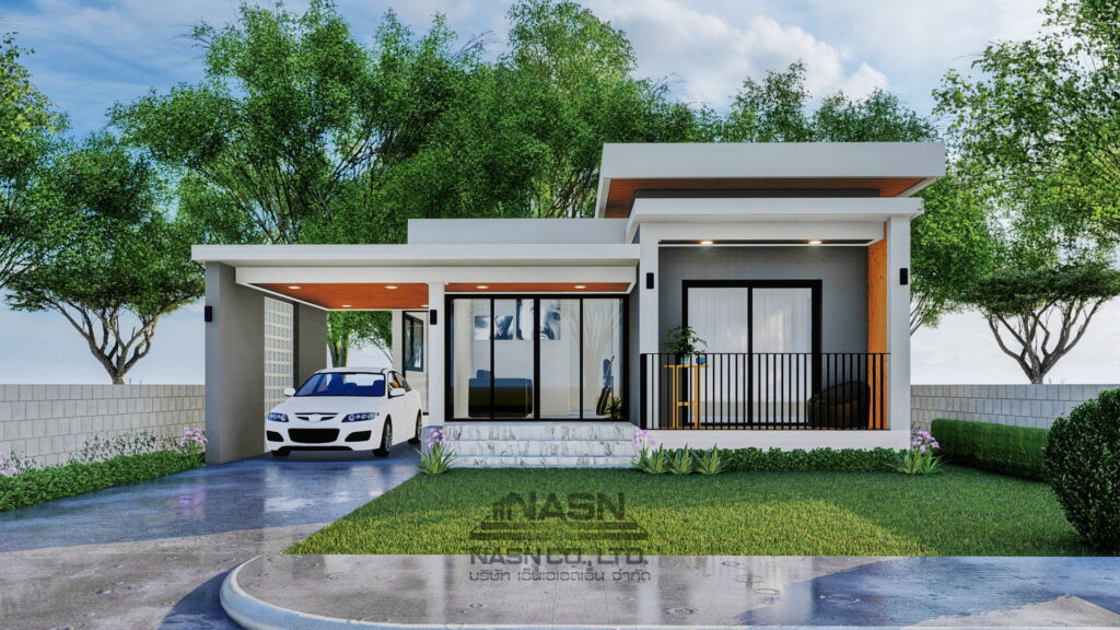 แบบบ้านโมเดิร์นชั้นเดียวหลังเล็ก ผลงานการออกแบบโดยทีมงาน NASN สร้างบ้านสวยในสไตล์คุณ บ้านขนาดกะทัดรัดสำหรับครอบครัวขนาดเล็ก หรือสร้างเป็นบ้านปล่อยเช่า งบประมาณก่อสร้างไม่เกินล้าน มาพร้อมดีไซน์ที่ทันสมัย เรียบง่าย แต่แฝงไปด้วยเอกลักษณ์เฉพาะตัวที่ทำให้บ้านหลังนี้แตกต่างไม่เหมือนใคร