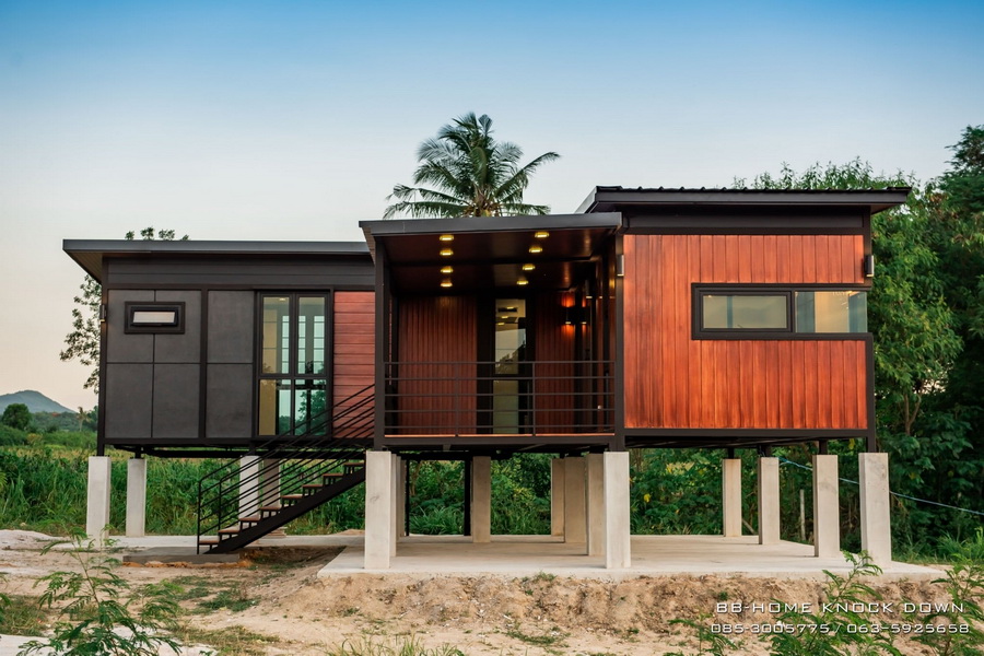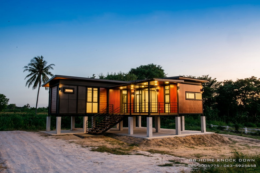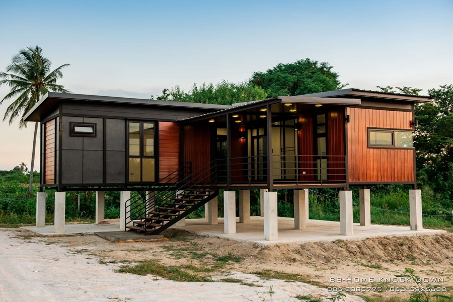 บ้านน็อคดาวน์โมเดิร์นลอฟท์ ผลงานการออกแบบและก่อสร้างโดย BB-Home บ้านน็อคดาวน์ สร้างขึ้นที่โครงการ @ทิวลำตะคอง จังหวัดนครราชสีมา เป็นบ้านทางเลือกใหม่ที่เน้นการก่อสร้างเร็ว ใช้โครงสร้างและวัสดุน้ำหนักเบา แต่มีความมั่นคงแข็งแรง เหมาะกับเป็นบ้านพักอาศัย หรือบ้านพักตากอากาศ
