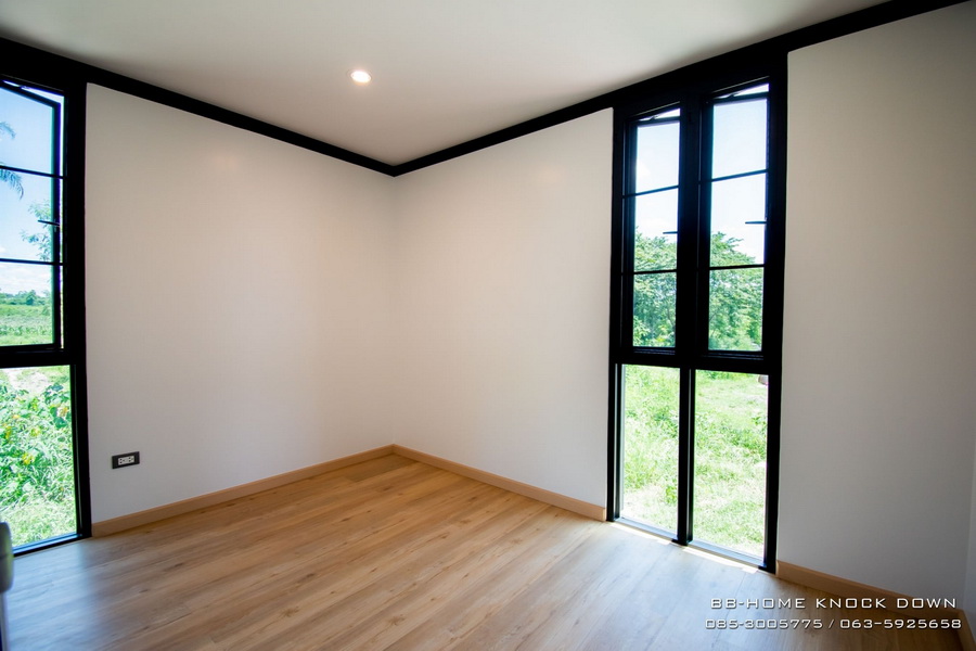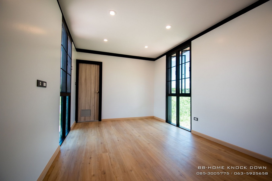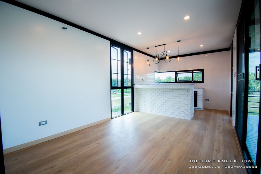 บ้านน็อคดาวน์โมเดิร์นลอฟท์หลังนี้ประกอบไปด้วย 2 ห้องนอน 2 ห้องน้ำ 1 ห้องรับแขก 1 พื้นที่ห้องครัวและระเบียง ขายพร้อมที่ดิน 600 ตารางวา ราคา 4,980,000 บาท (พร้อมที่ดิน)