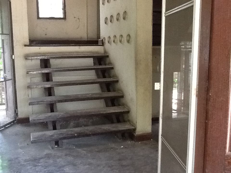 เลยช่วยกันขูดออกเองแล้วลงน้ำยาขัดพื้นแทน พอมองมาทางขวา จะมาบันไดเล็ก 2 ขั้น ลงไปเป็นพื้นเล่นระดับ แล้วมีห้องโถง ละเป็นห้องแยกซ้ายขวา
