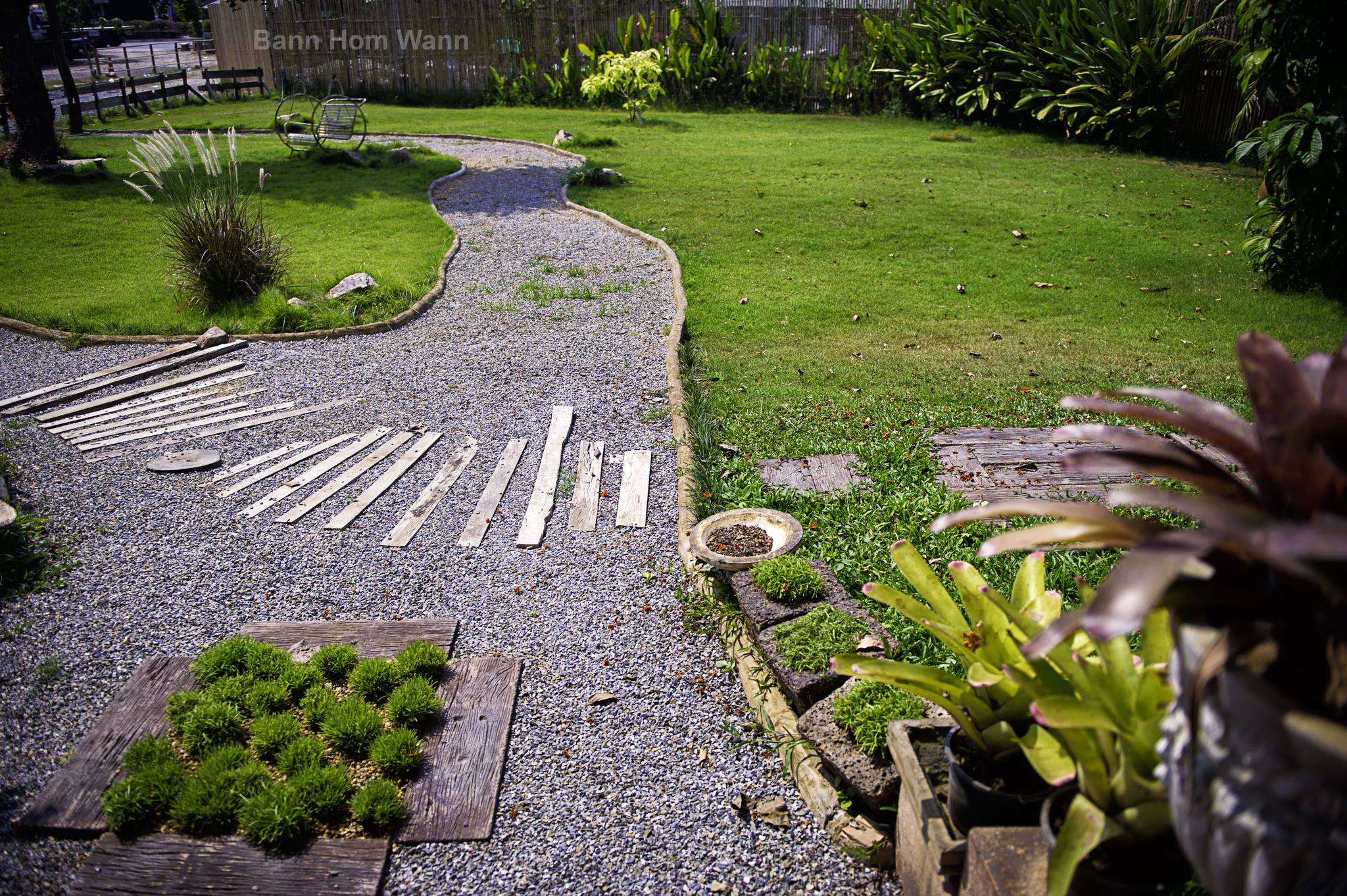 ทางเดินจะออกมาแบบนี้ มาตกแต่งเอง เอาไม้เหลือ ๆ อิฐเหลือ ๆ หินเหลือ ๆ มาเรียง ๆ