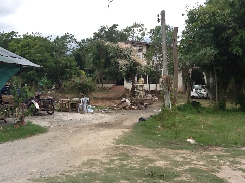 หลังจากนั้นก็ทำแปลนคร่าว ๆ เราจะทำทางเดินเข้าบ้าน ตอนนั้นงบใกล้หมดละ เลยเอาทางง่าย ๆ ช่างเสนอว่าใช้บล็อคปูนเรียงเป็นฐานละก่อปูนทับจะได้แนวกั้นทางเดินขั้นมา