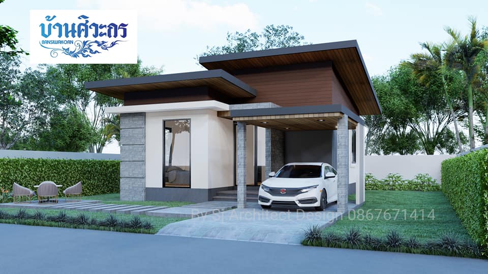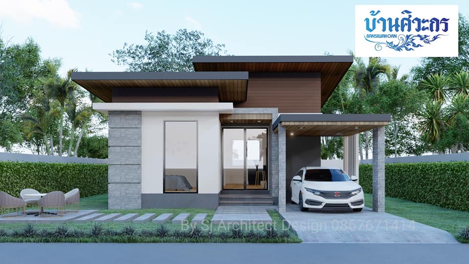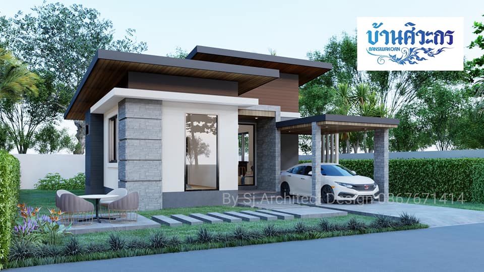 สวัสดีครับเพื่อนๆ ชาวเว็บ ในบ้าน ที่น่ารักทุกท่าน วันนี้เรามี แบบบ้านชั้นเดียวสไตล์โมเดิร์น มาฝากเพื่อนๆ กัน มีดีไซน์ที่เรียบง่าย กะทัดรัด ออกแบบสำหรับครอบครัวเล็กโดยเฉพาะ ผลงานของ Sj Architect Design ตามมาชมรายละเอียดกันได้เลยจ้า