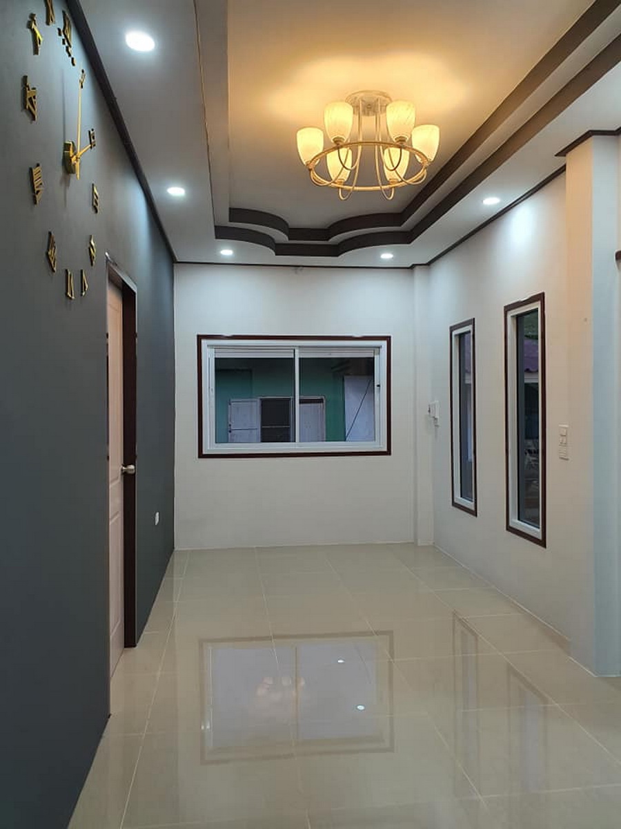 พื้นที่บริเวณนี้เป็นห้องโถงหลักของบ้านที่ตกแต่งด้วยโทนสีเทา สวยงามด้วยนาฬิกาแบบติดผนัง รวมถึงโคมไฟระย้าดีไซน์หรูหราภายในเพดานแบบหลุม