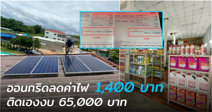 อย่างล่าสุดทางคุณ NiceTnaniindiie Heawpetch ที่ได้ติดตั้งโซล่าเซลล์ระบบออนกริดด้วยตัวเอง โดยใช้งบ 65,000 บาท ทำให้เดือนที่ผ่านมาช่วยลดค่าไฟไปได้ถึง 1,400 บาท
