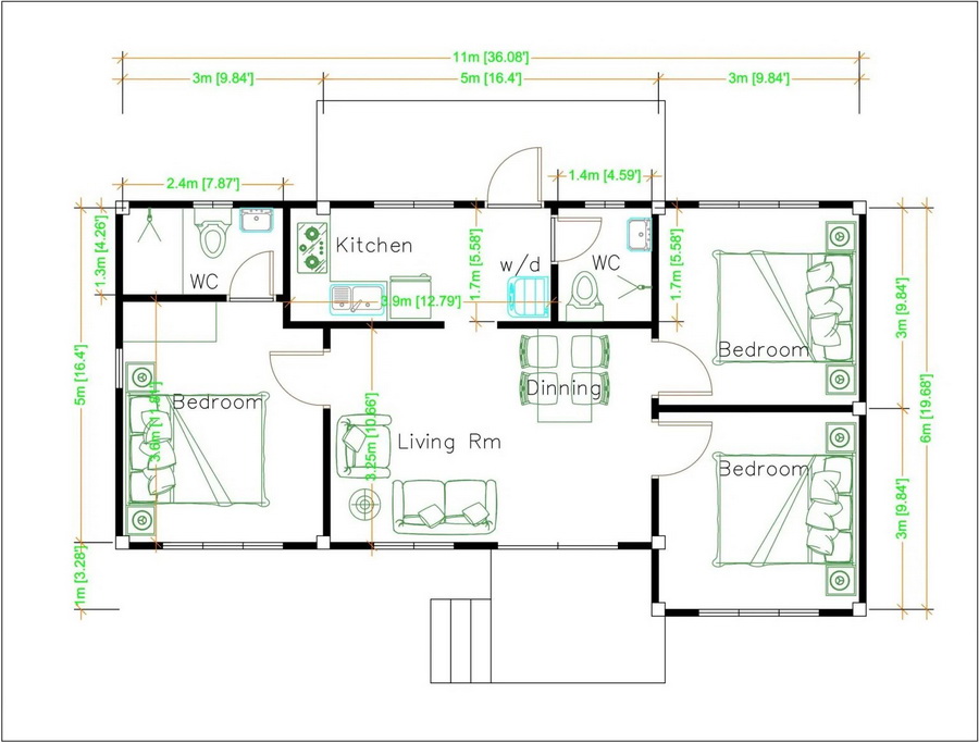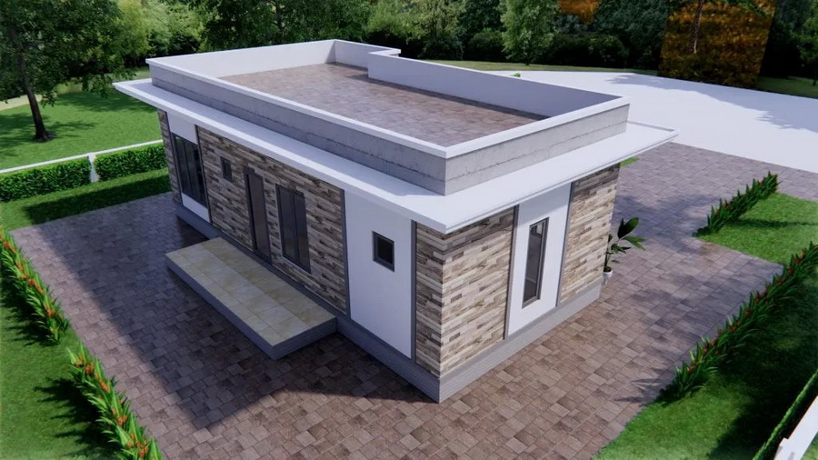 แบบบ้านขนาดเล็กสไตล์โมเดิร์นหลังนี้ประกอบไปด้วย 3 ห้องนอน 2 ห้องน้ำ 1 ห้องโถงนั่งเล่น 1 ห้องครัว พร้อมระเบียงขนาดเล็กหน้าบ้าน พื้นที่ใช้สอยประมาณ 66 ตารางเมตร หวังว่าไอเดียบ้านหลังนี้จะสวยงามถูกใจเพื่อนๆ กันนะครับ