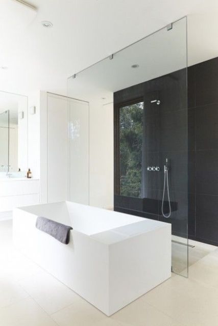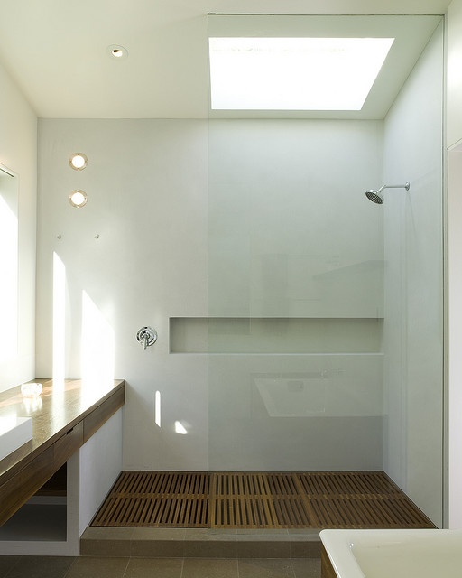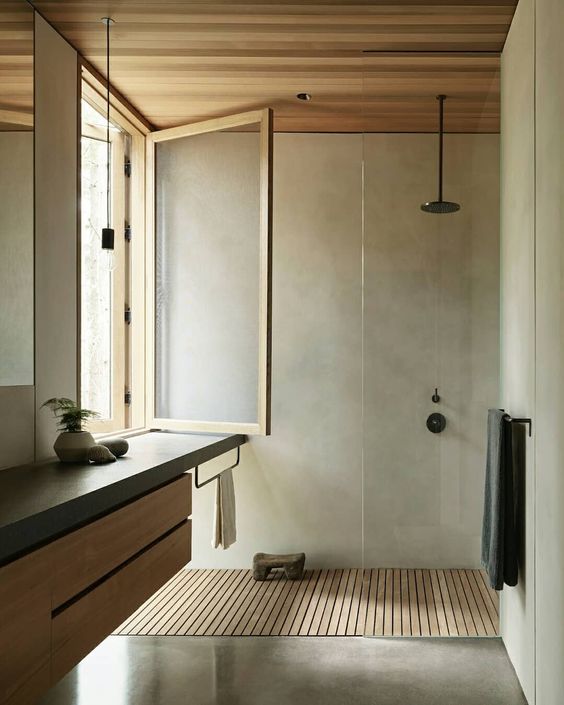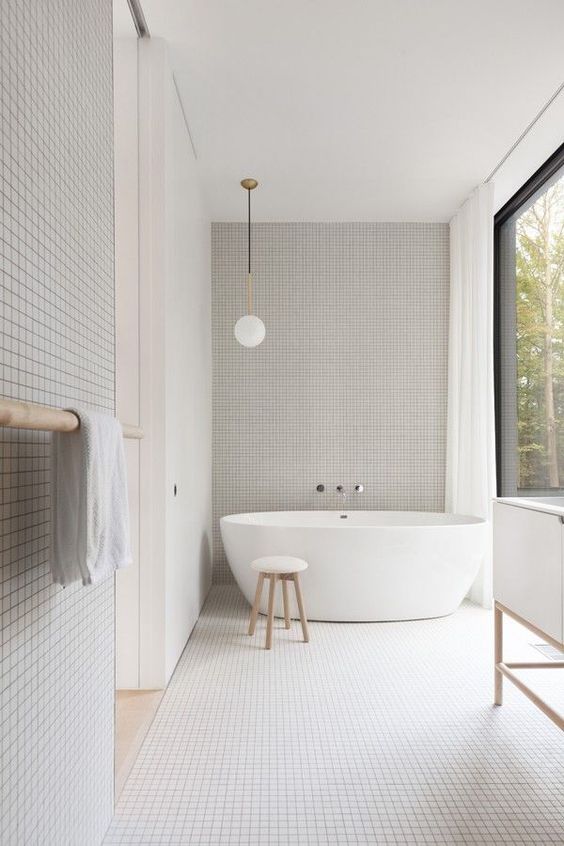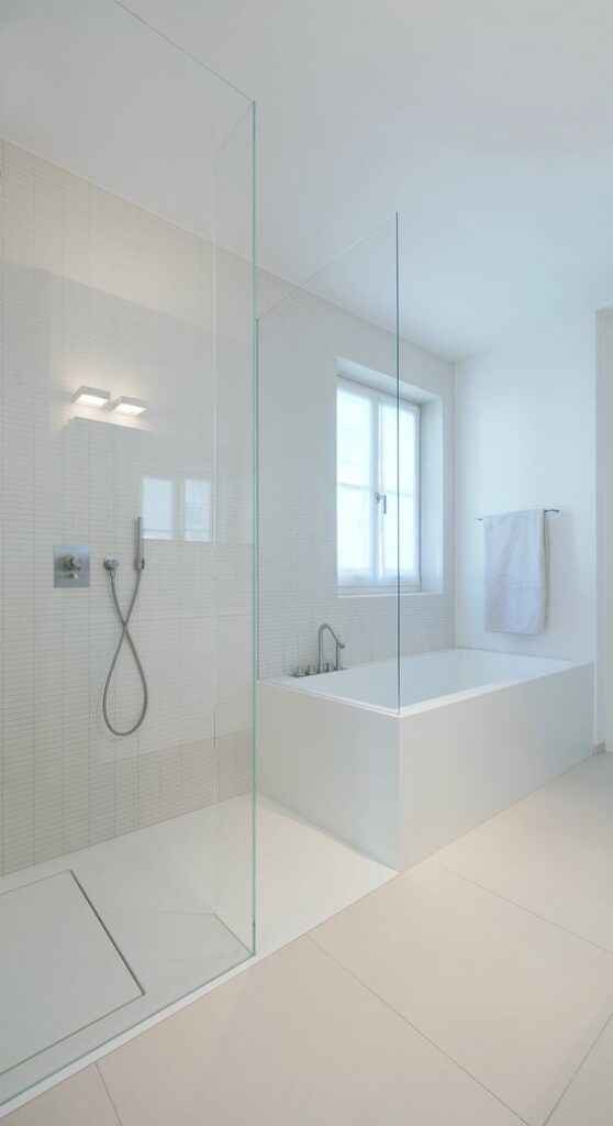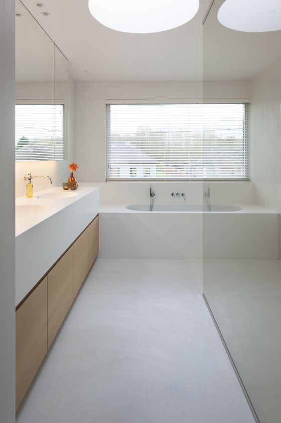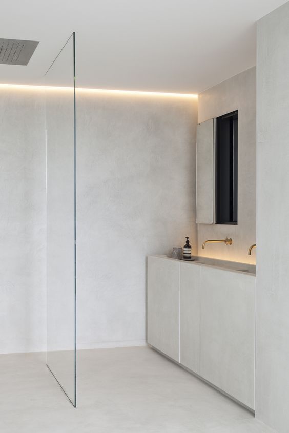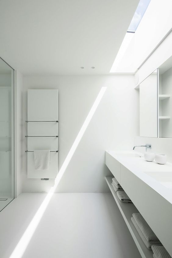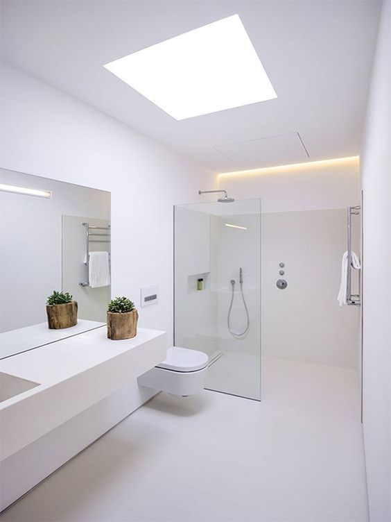 แสงสว่างก็เป็นอีกหนึ่งปัจจัยที่เราต้องใส่ใจในการตกแต่งห้องน้ำสไตล์มินิมอล การเลือกและการจัดวางตำแหน่งหน้าต่างและแสงไฟในห้องน้ำจึงต้องมีความพิถีพิถันด้วย สามารถเลือกใช้ฝ้าแบบสกายไลท์หรือหน้าต่างกระจกขุ่นบานใหญ่ จะทำให้ห้องน้ำดูกว้างและน่าใช้งานยิ่งขึ้น