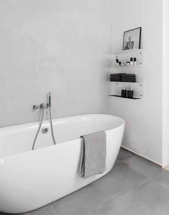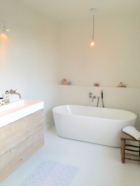 หากคุณชื่นชอบบรรยากาศที่เรียบง่ายสไตล์มินิมอลล่ะก็ การตกแต่งห้องน้ำในสไตล์นี้ก็นับว่าเป็นทางเลือกที่ไม่เลว ลองมาชมภาพสวย ๆ กันดูต่อได้เลย ไม่แน่ว่าอาจจะไอเดียที่ถูกใจคุณอยู่ก็เป็นได้นะ ^_^