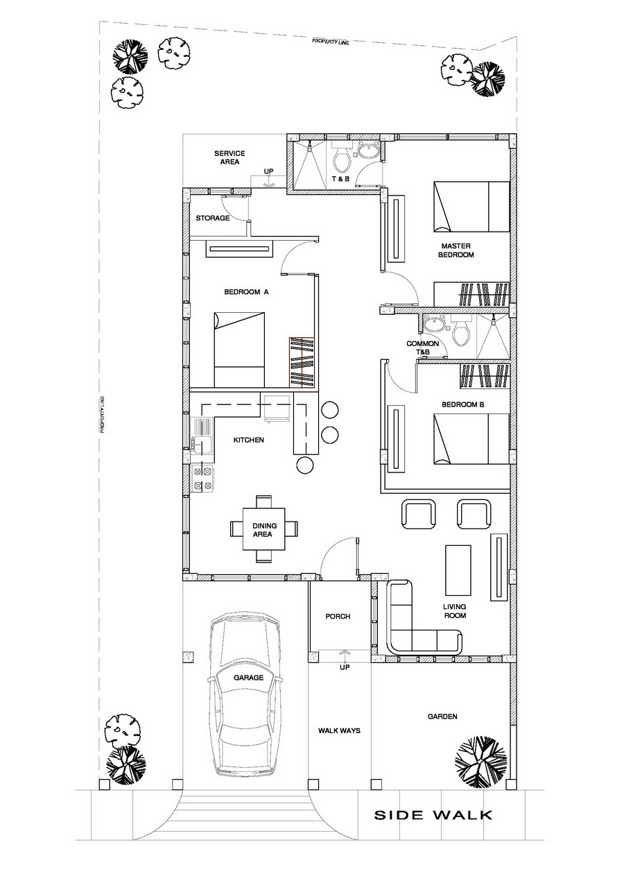 แบบบ้านหน้าแคบทรงโมเดิร์นหลังนี้ประกอบไปด้วย 3 ห้องนอน 2 ห้องน้ำ 1 ห้องนั่งเล่น 1 ห้องครัว 1 ห้องเก็บของ พร้อมที่จอดรถและสวนหน้าบ้าน พื้นที่ใช้สอยทั้งหมดประมาณ 73 ตารางเมตร