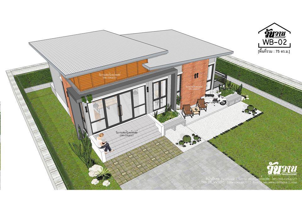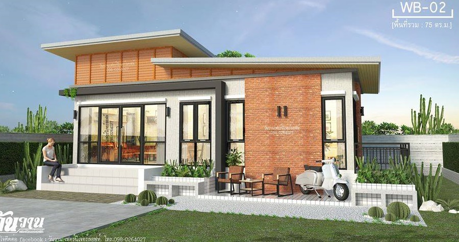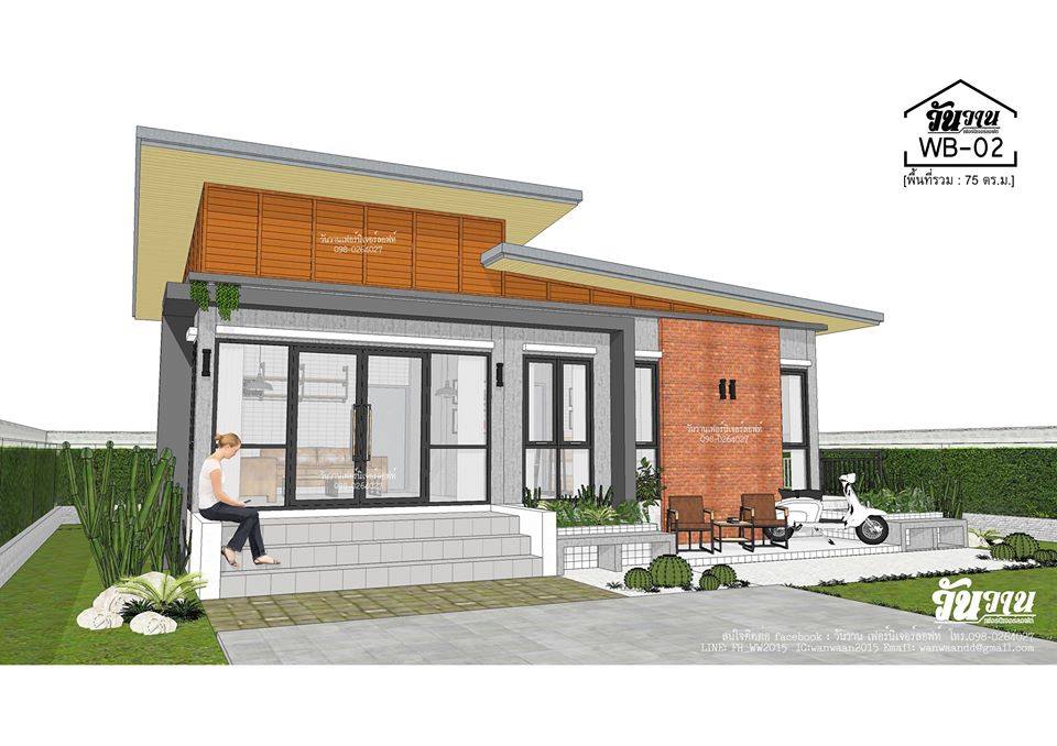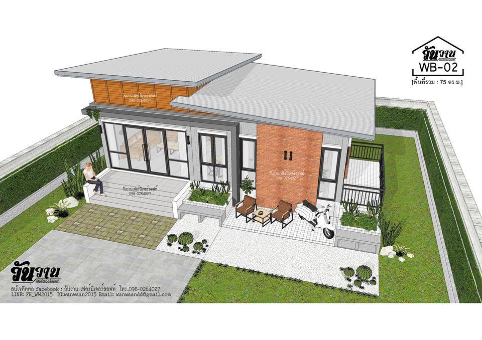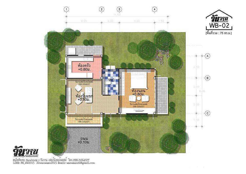 แบบบ้านหลังนี้ประกอบไปด้วย 1 ห้องนอน 1 ห้องน้ำ 1 ห้องครัว 1 ห้องรับแขก บนพื้นที่ใช้สอยเพียง 75 ตารางเมตร หากเพื่อน ๆ ชาวเว็บสนใจรายละเอียดเพิ่มเติมเกี่ยวกับแบบแปลนฉบับนี้ สามารถสอบถามเจ้าของผลงานได้โดยตรงผ่านช่องทางติดต่อด้านล่างนี้เลยนะครับ
