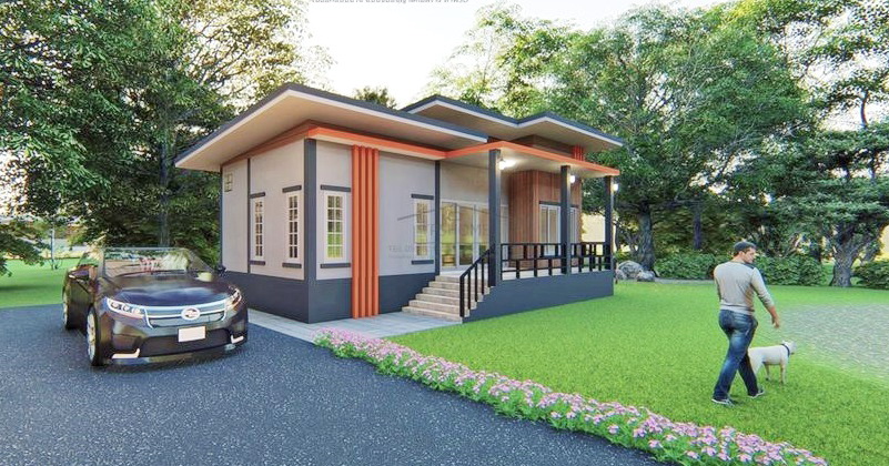 บ้านชั้นเดียวสไตล์โมเดิร์นหลังนี้ประกอบไปด้วย 3 ห้องนอน 2 ห้องน้ำ 1 ห้องรับแขก 1 ห้องครัว พื้นที่ใช้สอยทั้งหมด 77 ตารางเมตร งบก่อสร้างเริ่มต้นที่ประมาณ 690,000 บาท