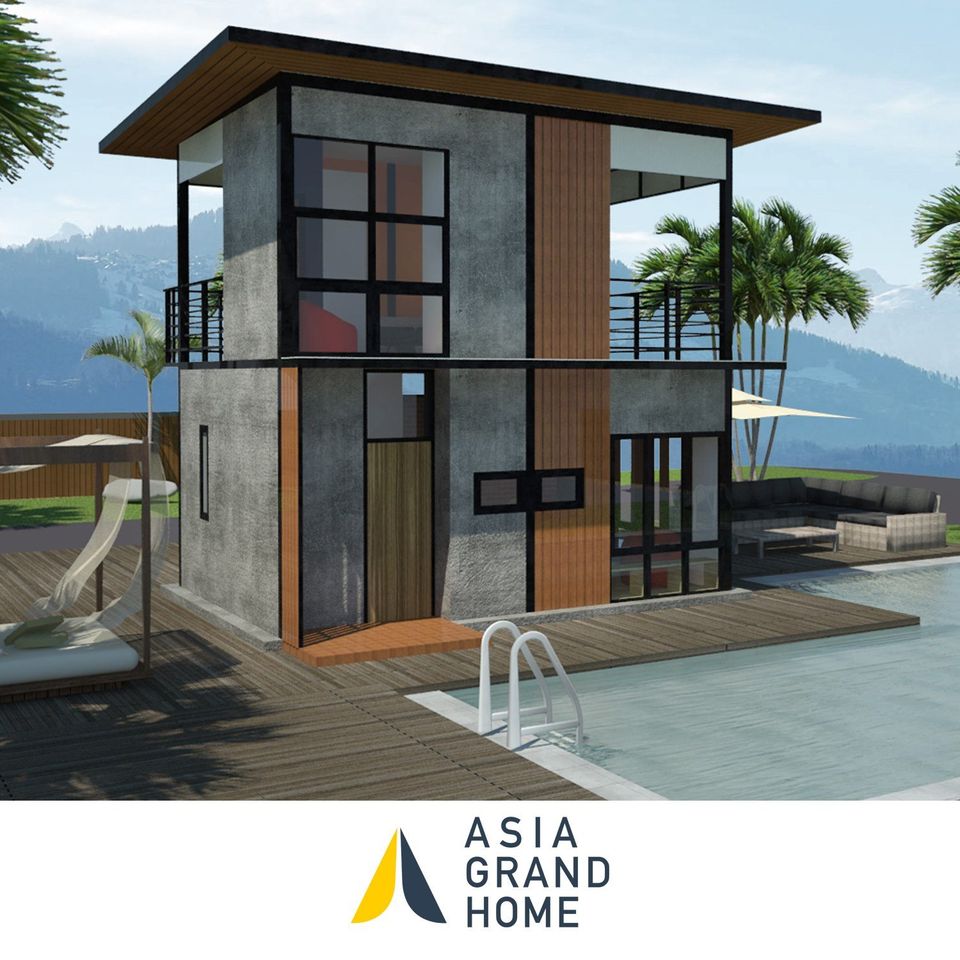7. บ้านน็อคดาวน์สไตล์ทรอปิคอลโมเดิร์น ออกแบบหลังคาลาดเอียงให้ดูโมเดิร์น พื้นที่ 38 ตร.ม.