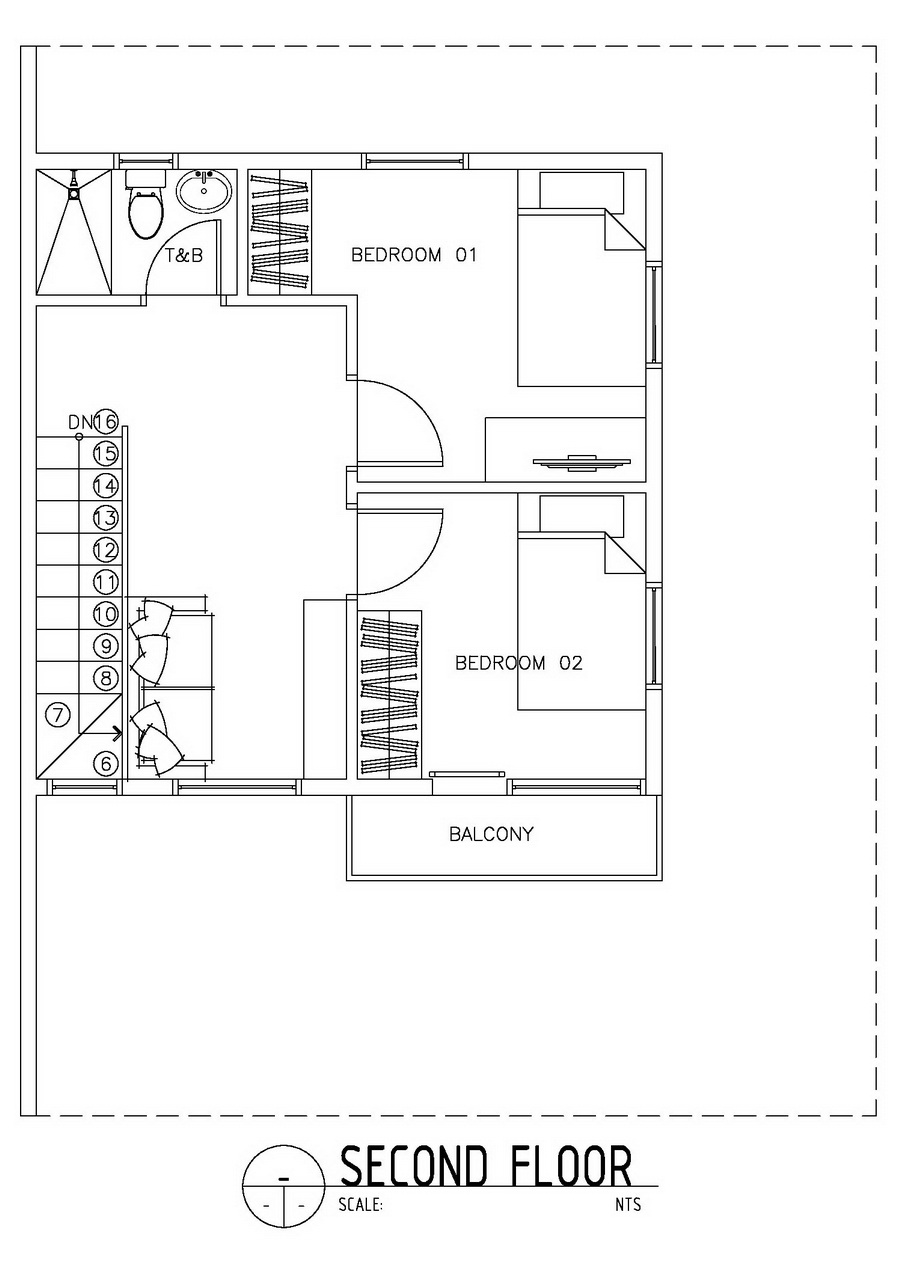 แบบบ้านสองชั้นสไตล์คลาสสิก 2 ห้องนอน 1 ห้องน้ำ พร้อมที่จอดรถ พื้นที่ 80 ตร.ม.