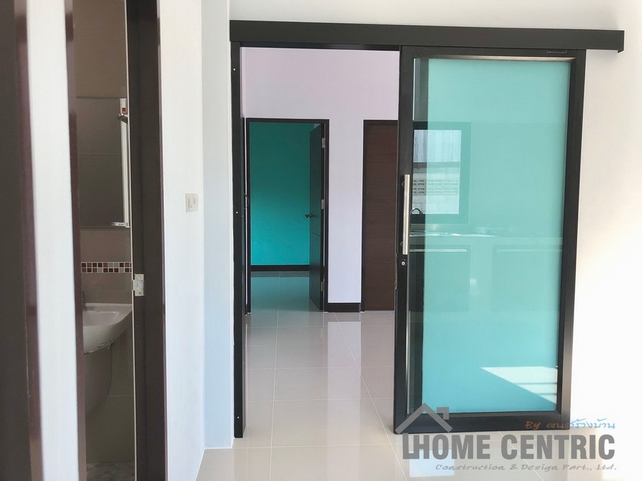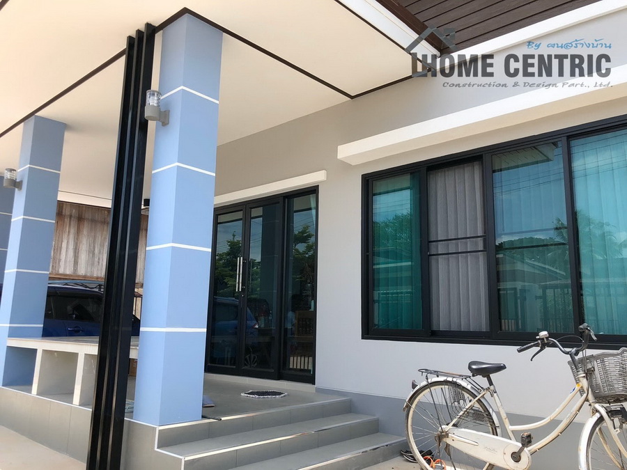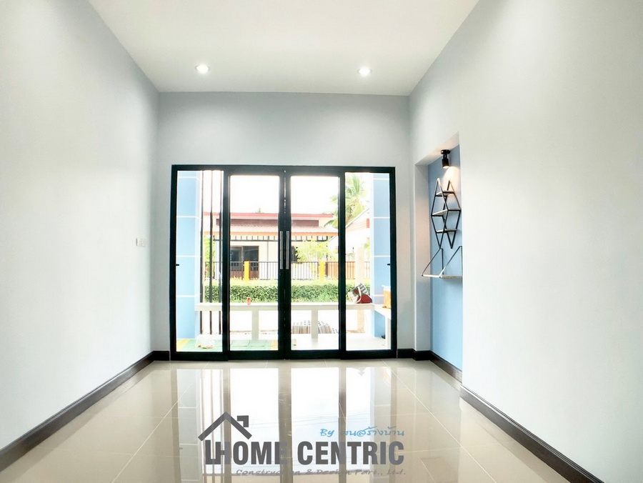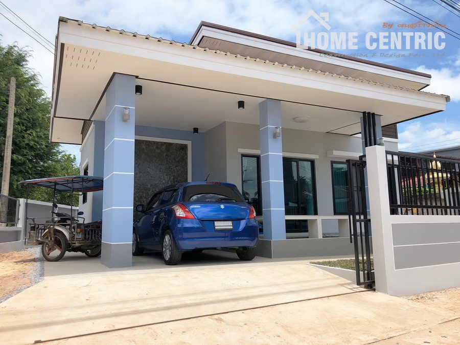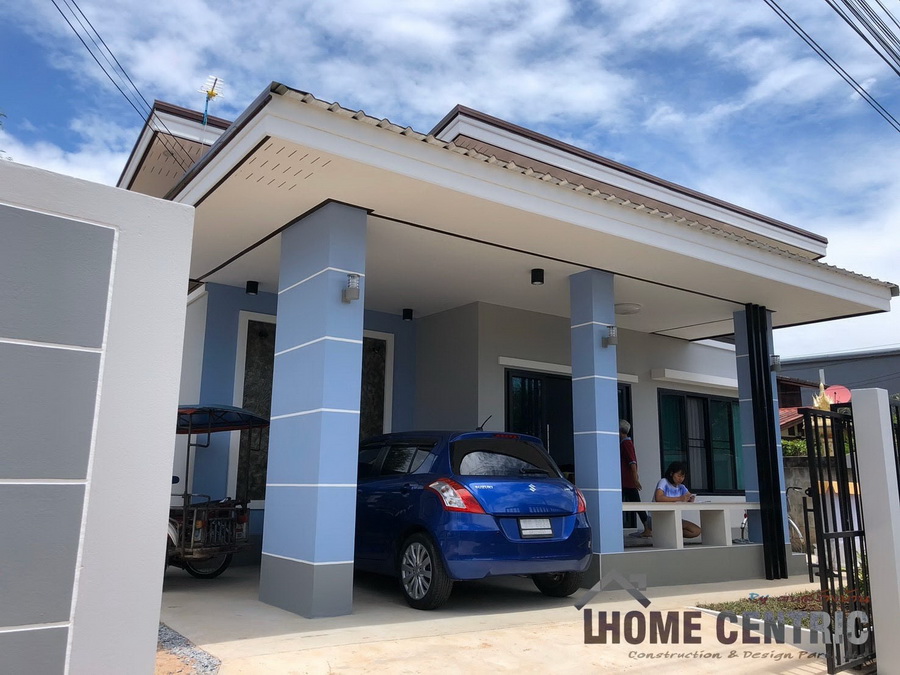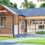 บ้านโมเดิร์นชั้นเดียว ออกแบบหลังคาทรงเพิงหมาแหงนเล่นระดับ 3 ห้องนอน 1 ห้องน้ำ พื้นที่ 80 ตร.ม.
