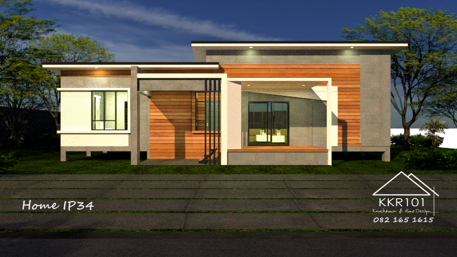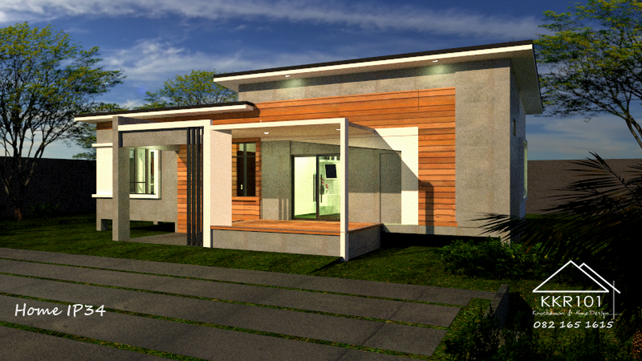 แบบบ้านหลังนี้เป็นบ้านชั้นเดียว ฐานของบ้านถูกยกขึ้นสูง โครงสร้างบ้านเป็นเหล็กและส่วนประกอบสำเร็จรูป ตัวบ้านมีดีไซน์ทรงสี่เหลี่ยมแบบโมเดิร์น ด้านรายละเอียดการตกแต่งนั้น ผนังภายนอกตกแต่งด้วยผนังแบบปูนเปลือย แซมด้วยผนังลายไม้สีน้ำตาลที่เข้ากันเป็นอย่างดี