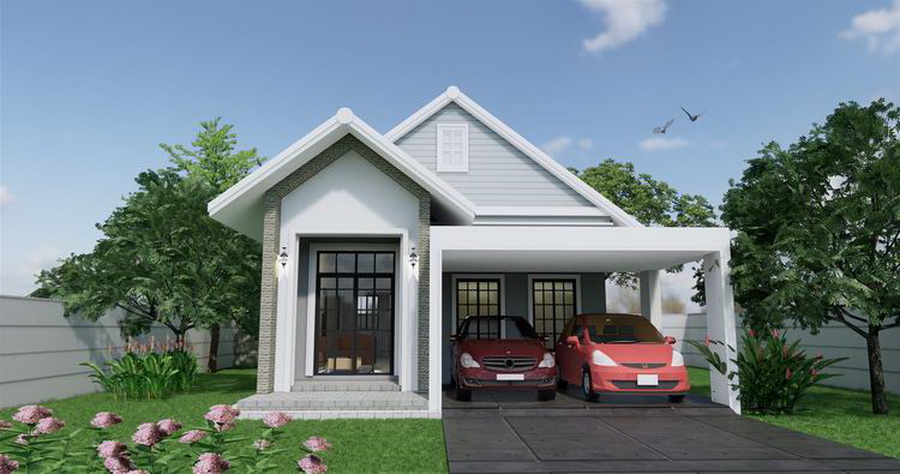 แบบบ้านสไตล์คอนเทมโพรารีหลังนี้ประกอบไปด้วย 2 ห้องนอน 2 ห้องน้ำ 1 ห้องโถงใหญ่ แบ่งเป็นห้องนั่งเล่น ห้องครัว และพื้นที่รับประทานอาหาร จอดรถ 1คัน พื้นที่ใช้สอยอยู่ที่ประมาณ 85 ตารางเมตร งบก่อสร้างเริ่มต้นที่ 950,000 บาท