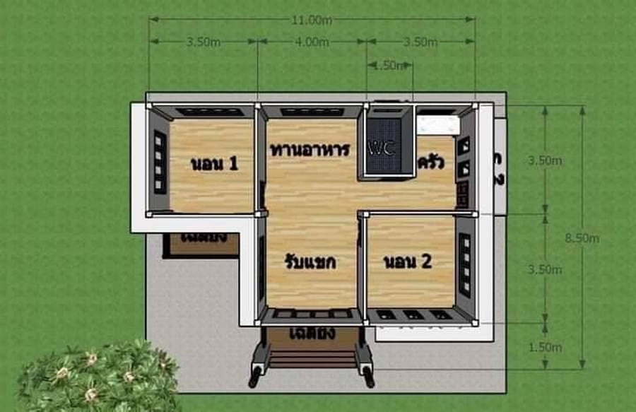 แบบบ้านหน้ากว้างทรงโมเดิร์นหลังนี้ประกอบไปด้วย 2 ห้องนอน 1 ห้องน้ำ 1 ห้องโถงใหญ่ที่แบ่งเป้นห้องนั่งเล่นและห้องรับประทานอาหาร 1 ห้องครัว พื้นที่ใช้สอยทั้งหมดประมาณ 85 ตารางเมตร หากเพื่อน ๆ สนใจข้อมูลอื่น ๆ เพิ่มเติม สามารถสอบถามได้จากช่องทางติดต่อด้านาล่างนี้ได้เลยครับ