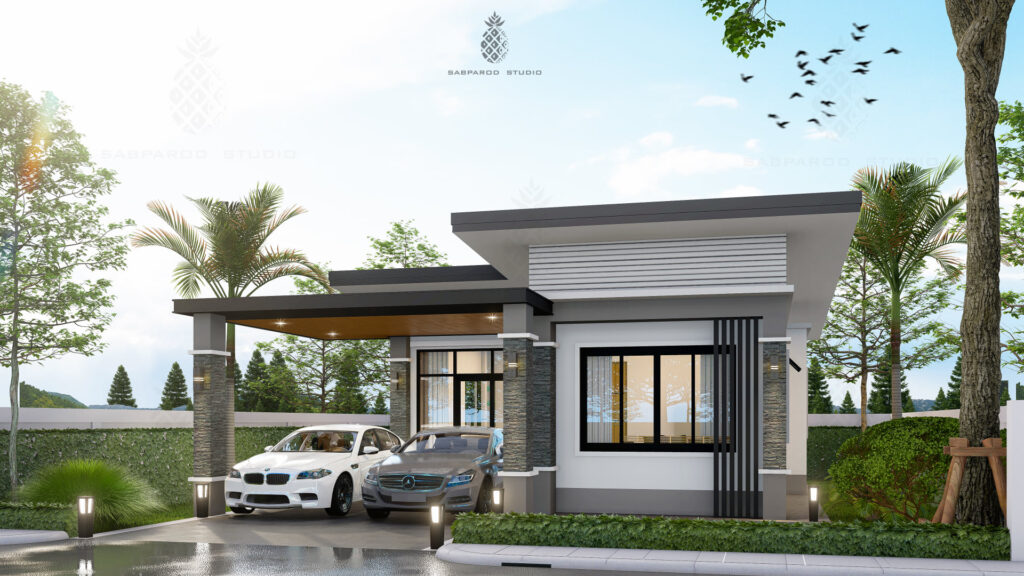 แบบบ้านโมเดิร์นหลังเล็กโทนสีเทา ผลงานการออกแบบโดยทีมงาน Sabparod Studio บ้านขนาดกะทัดรัดสำหรับครอบครัวเริ่มต้น หรือจะสร้างเป็นรีสอร์ตหรือบ้านเช่าก็ได้ ดีไซน์เรียบง่าย เส้นสายโดดเด่นทันสมัย ฟังก์ชันตอบโจทย์คนไทย ตามมาชมกันเลยครับ