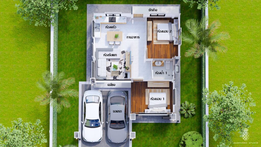 แบบบ้านโมเดิร์นหลังนี้ประกอบไปด้วย 2 ห้องนอน 1 ห้องน้ำ 1 ห้องรับแขก 1 ห้องครัว 2 ที่จอดรถ พื้นที่ใช้สอย 85 ตารางเมตร หากเพื่อน ๆ ชาวเว็บต้องการข้อมูลเพิ่มเติมเกี่ยวกับแบบบ้านฉบับนี้ สามารถสอบถามรายละเอียดได้จากผู้ออกแบบผ่านช่องทางติดต่อด้านล่างนี้เลยนะครับ