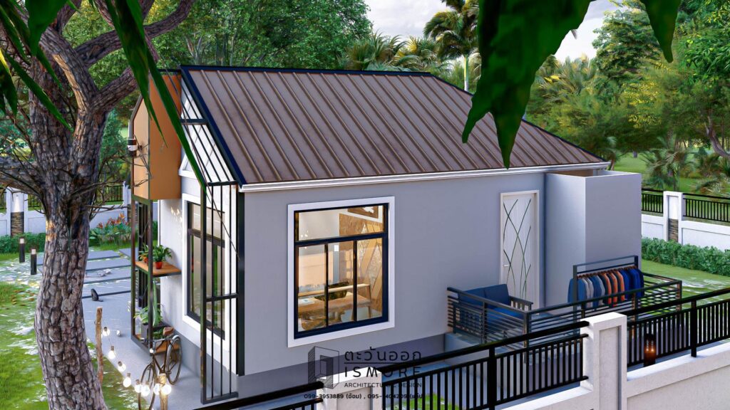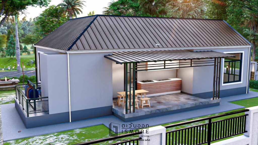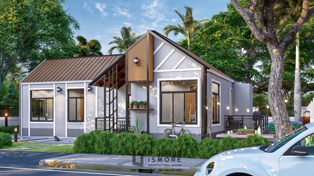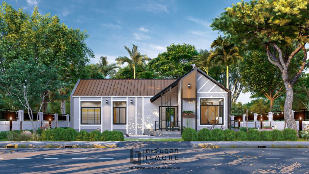 แบบบ้านชั้นเดียวสไตล์คาเฟ่ ผลงานการออกแบบจาก Is More ArchitecturalDsign รูปแบบบ้านสวยดิบมีเอกลักษณ์ ด้วยโทนสีเรียบเท่ พร้อมด้วยเส้นสายเรขาคณิตอันโดดเด่น เป็นแบบบ้านที่เหมาะสำหรับที่ดินหน้ากว้างครับ