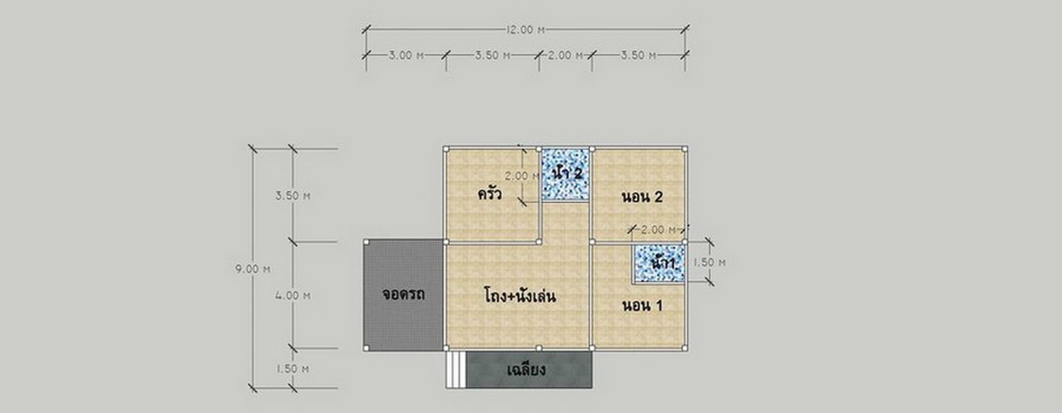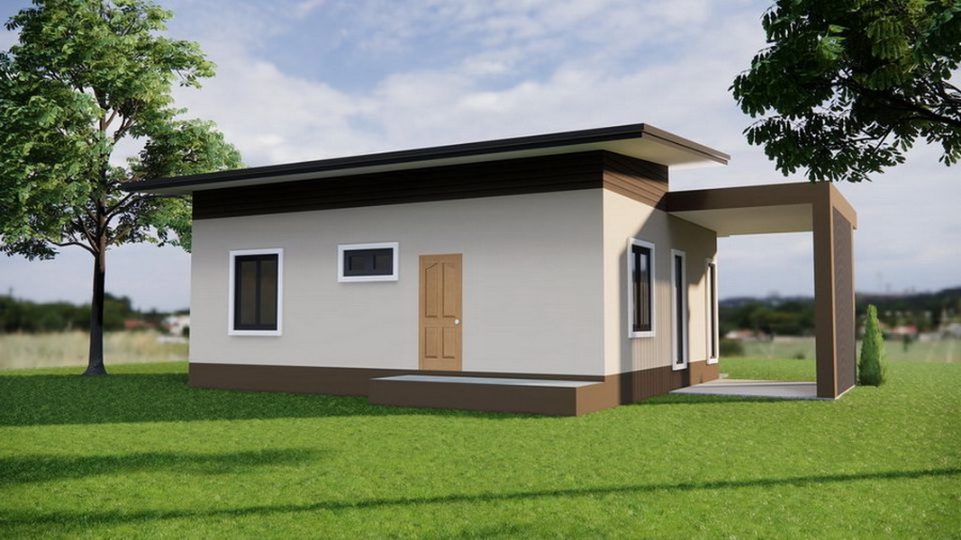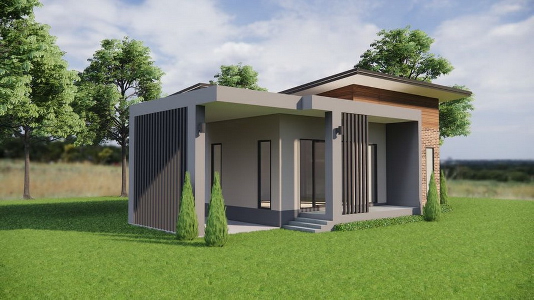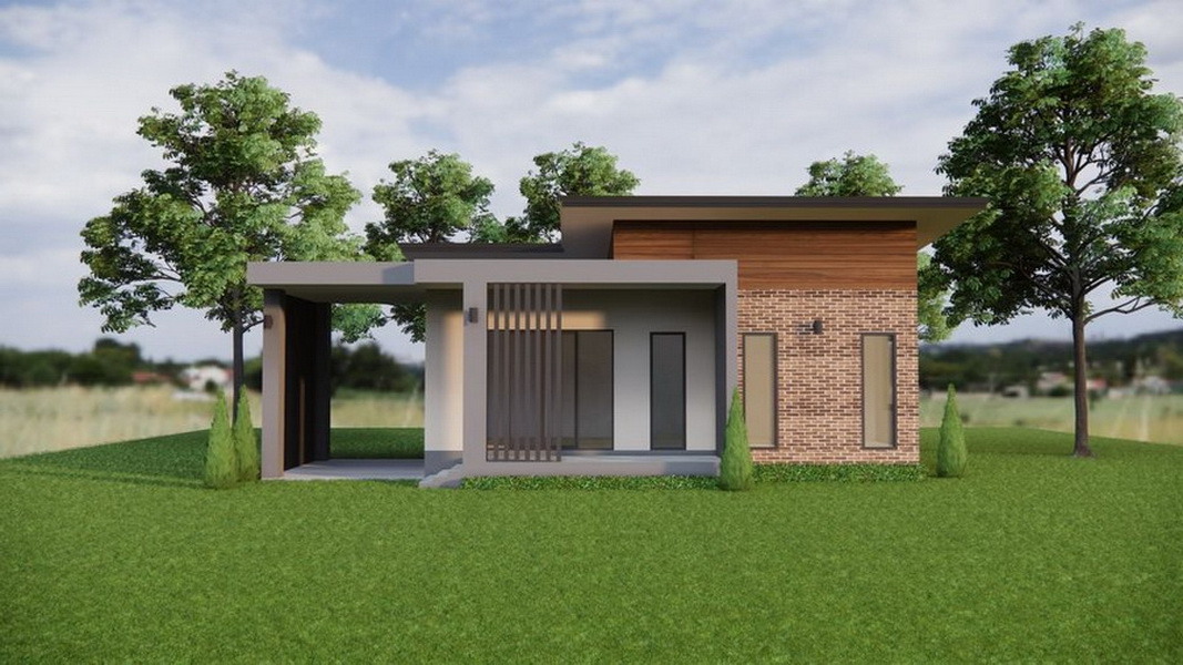 แบบบ้านสไตล์โมเดิร์นหลังนี้ประกอบไปด้วย 2 ห้องนอน 2 ห้องน้ำ 1 ห้องโถงนั่งเล่น 1 ห้องครัว พร้อมเฉลียงหน้าบ้านและที่จอดรถ พื้นที่ใช้สอยทั้งหมดประมาณ 88 ตารางเมตร ราคาแบบสำเร็จอยู่ที่ 3,900 บาท