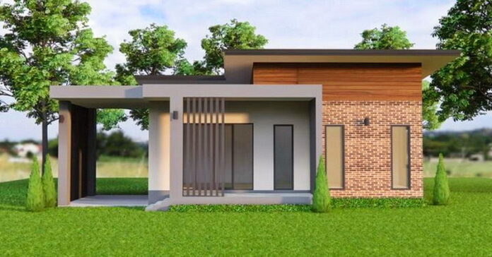 แบบบ้านสไตล์โมเดิร์น หลังนี้เป้นผลงานการออกแบบโดย แบบบ้าน นำโชค ซึ่งได้ออกแบบบ้านพร้อมแปลนสำเร็จรูปให้ผู้ที่สนใจติดต่อซื้อไปสร้างบ้านได้เลย เป็นบ้านหลังขนาดพอเหมาะที่มีครบทุกฟังก์ชัน เหมาะกับเพื่อน ๆ ที่กำลังมองหาไอเดียเพื่อบ้านหลังแรกเลยล่ะ