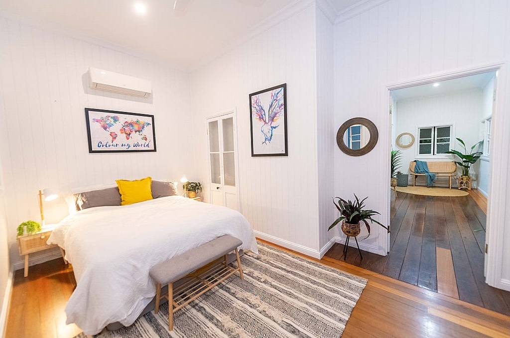 ในขณะที่ห้องนอน ก็เป็นอีกห้องที่มีรายละเอียดการตกแต่งแบบสบาย ๆ โดยยังยังมีธีมการตกแต่งที่เน้นบรรยากาศที่สว่าง เหมาะกับการพักผ่อนอย่างเต็มที่