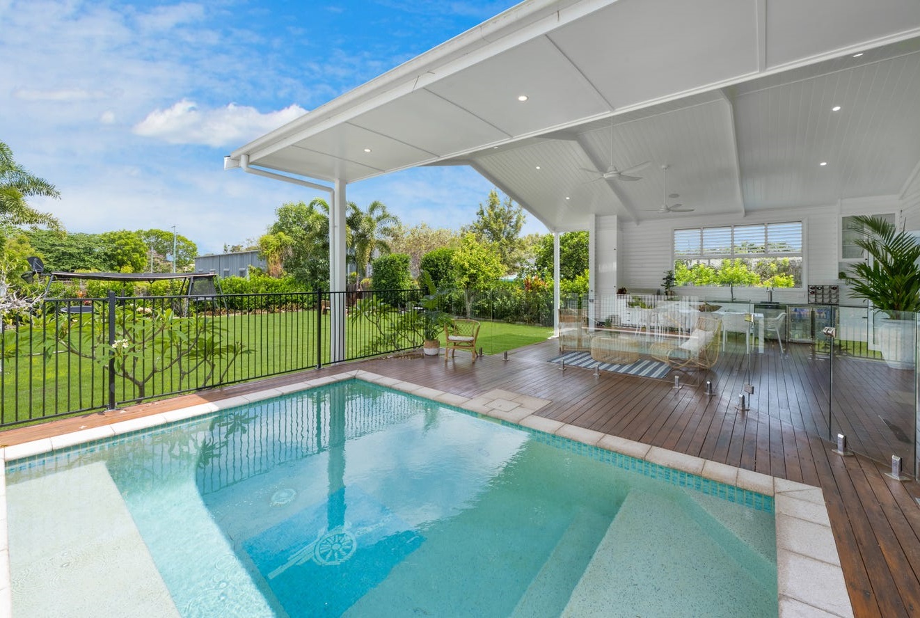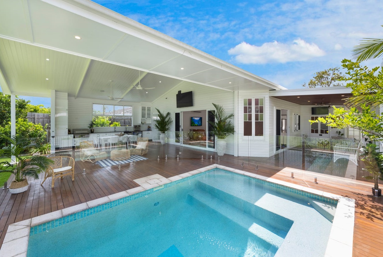 ที่ติดกับลานไม้ จะเป็นสระว่ายน้ำส่วนตัวขนาดเล็ก จึงสามารถใช้เป็นมุมออกกำลังกาย หรือมุมเล่นสนุกได้ หากในบ้านมีเด็ก ๆ ก็น่าจะเป็นมุมโปรดของเด็ก ๆ กันเลย