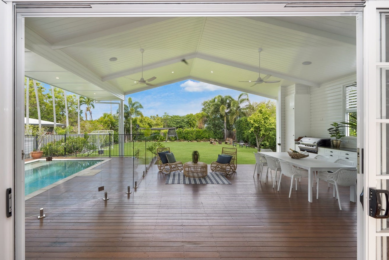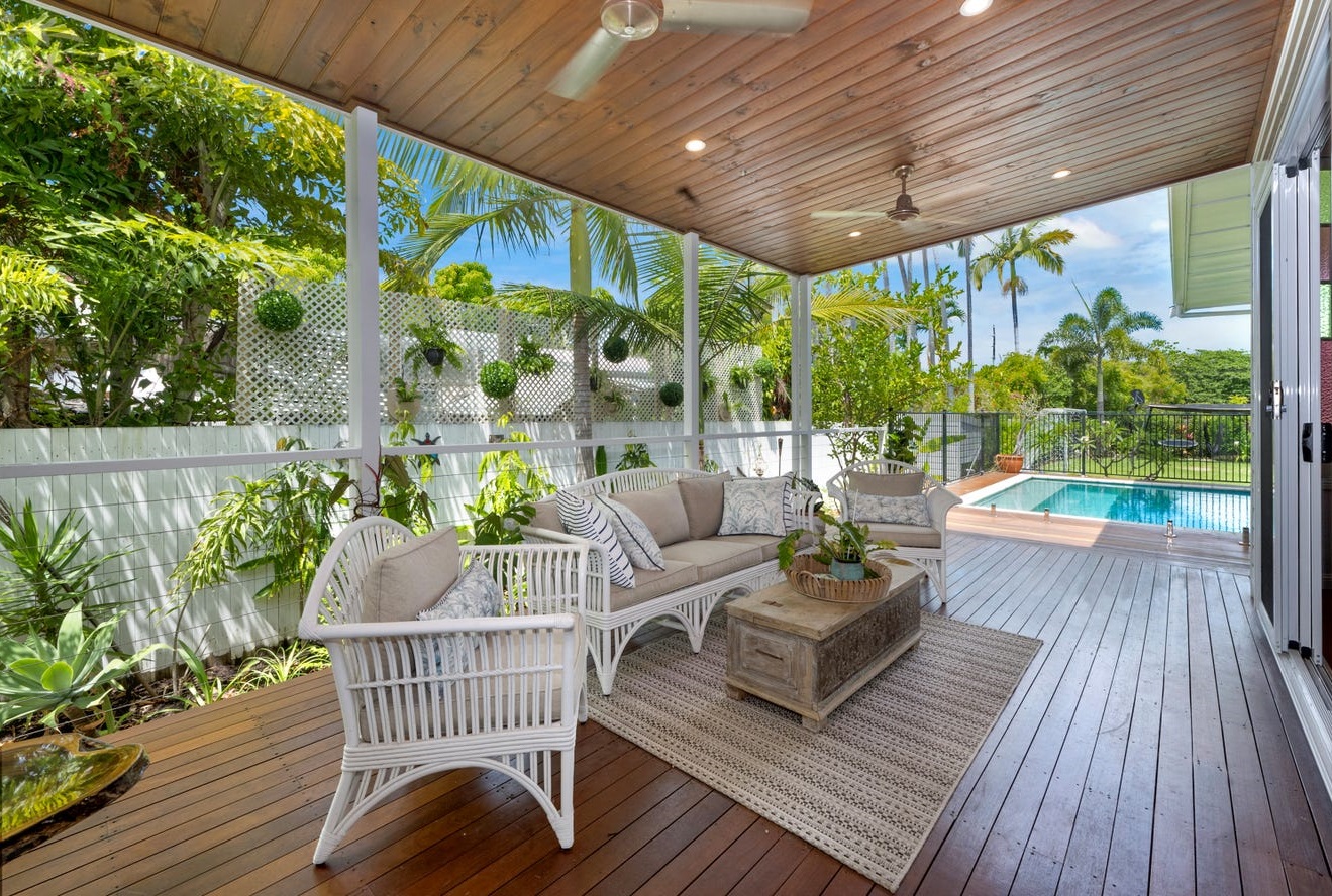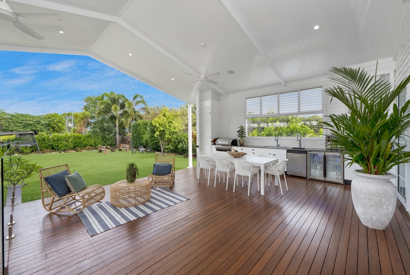 ภายในพื้นที่ลานไม้ จะมีทั้งจุดที่ตกแต่งด้วยม้านั่งสำหรับพักผ่อน ที่ใกล้ ๆ กัน คือเคานเตอร์ทำอาหารแบบปิ้งย่าง ซึ่งเหมาะกับบรรยากาศธรรมชาติหลังบ้านสุด ๆ