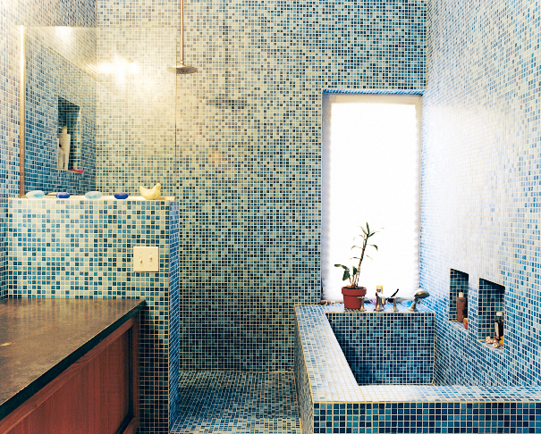 3. สร้างบรรยากาศสดชื่นให้การอาบน้ำด้วยกระเบื้องจิ๋วโทนสีน้ำเงิน