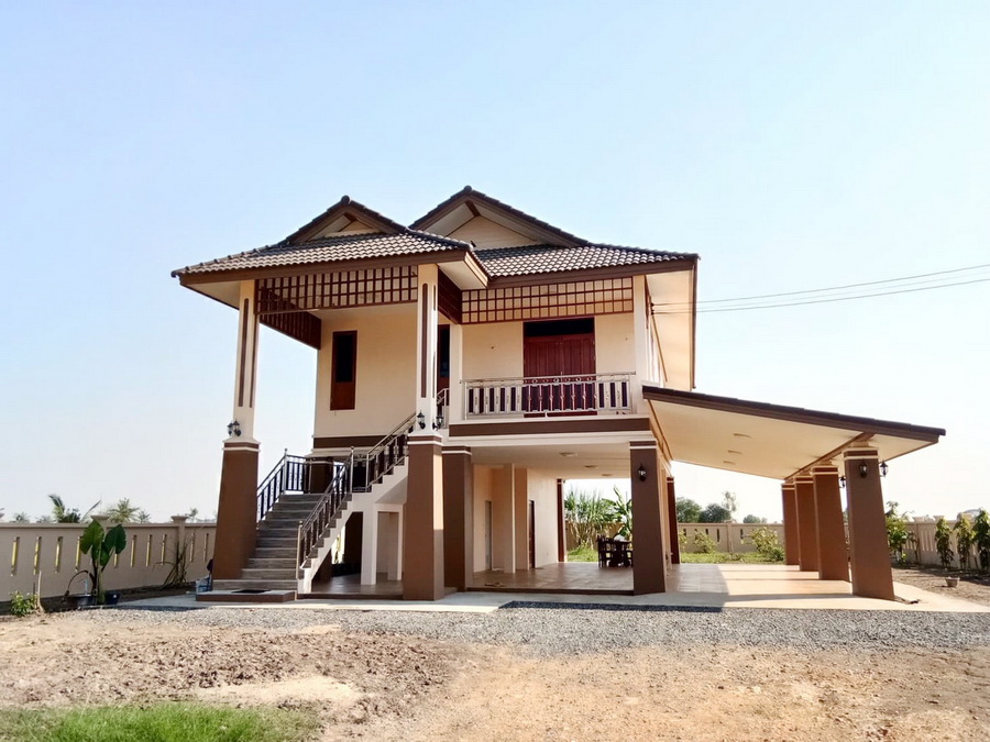 แบบบ้านหน้าแคบใต้ถุนสูงทรงไทยประยุกต์หลังนี้ประกอบไปด้วย 2 ห้องนอน 2 ห้องน้ำ 1 ห้องรับแขก 1 ห้องครัว 1 ห้องรับประทานอาหาร มีระเบียงหน้าบ้าน ห้องพระ ห้องละหมาด พร้อมที่จอดรถ พื้นที่ใช้สอยทั้งหมดประมาณ 90 ตารางเมตร (ไม่รวมพื้นที่ใต้ถุน) งบก่อสร้างเริ่มต้นที่ประมาณ 900,000 บาท