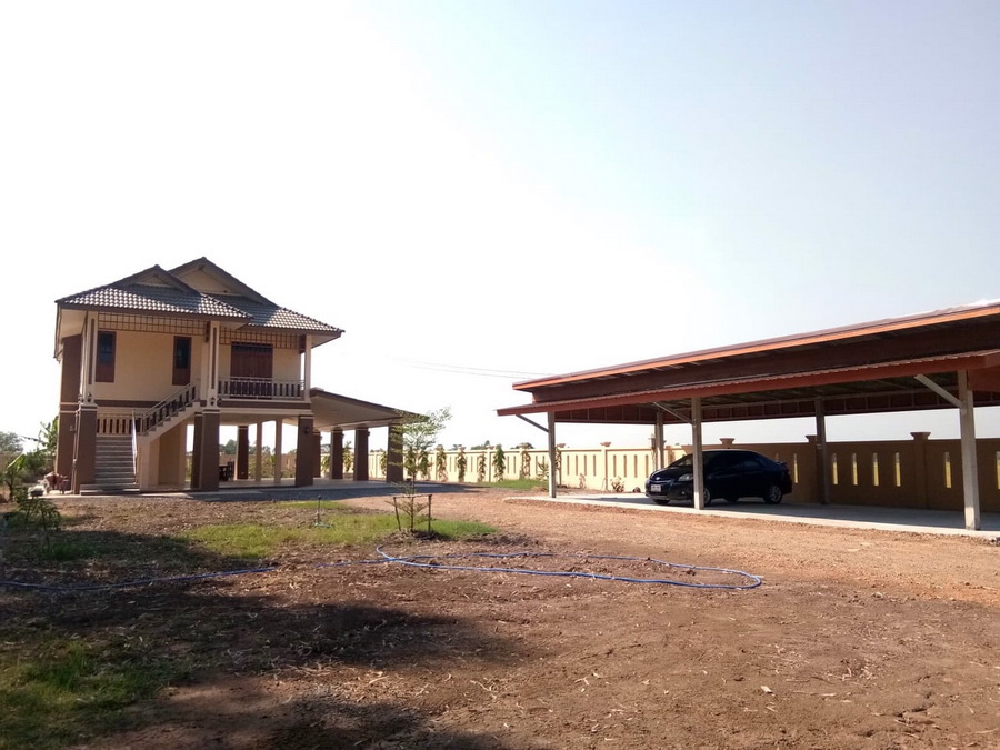 นอกจากพื้นที่จอดรถที่เชื่อมกับตัวบ้านแล้ว เจ้าของบ้านหลังนี้ยังก่อสร้างโรงจอดรถเพิ่มเติมอีกแห่งนอกตัวบ้าน โดยเป้นโรงจอดรถขนาดยาวที่สามารถจอดได้หลายคัน
