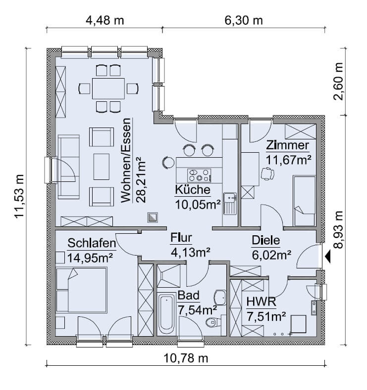 แบบบ้านโมเดิร์นชั้นเดียวหลังคาปั้นหยา ผลงานการออกแบบของบริษัทรับสร้างบ้านจากประเทศเยอรมนี ScanHaus Marlow บ้านชั้นเดียวเส้นสายรูปทรงเรียบง่าย แต่เปี่ยมไปด้วยเสน่ห์เฉพาะตัว พร้อมฟังก์ชันภายในที่ครบครันทันสมัย บนพื้นที่ใช้สอยเพียง 90 ตารางเมตร