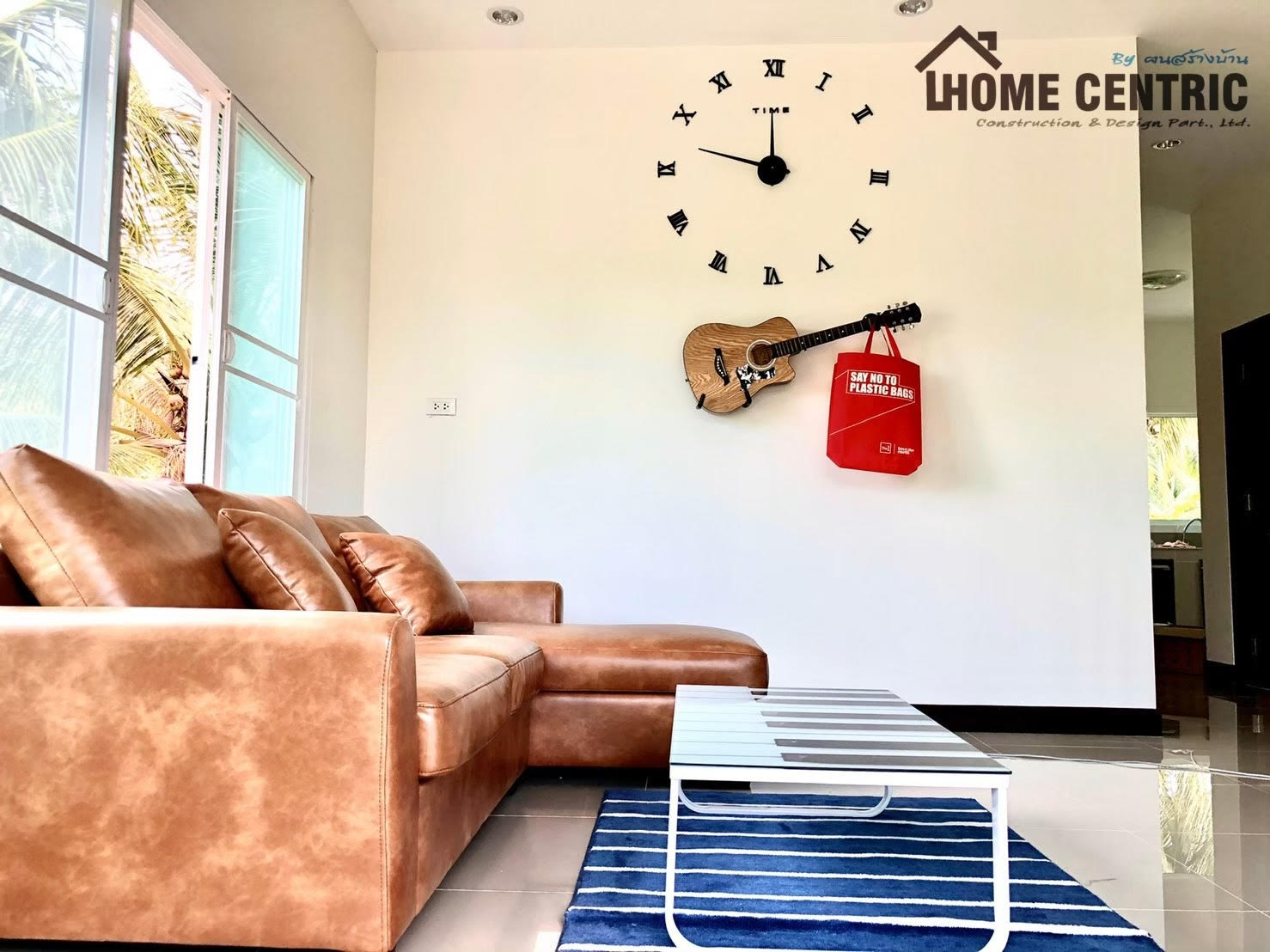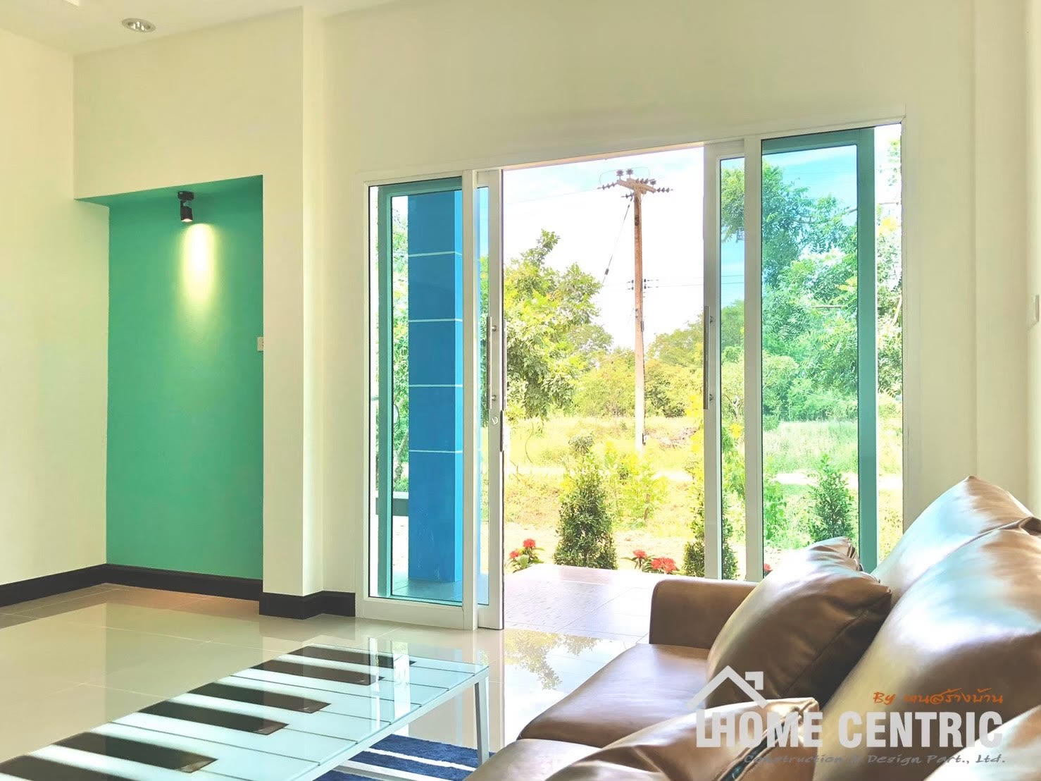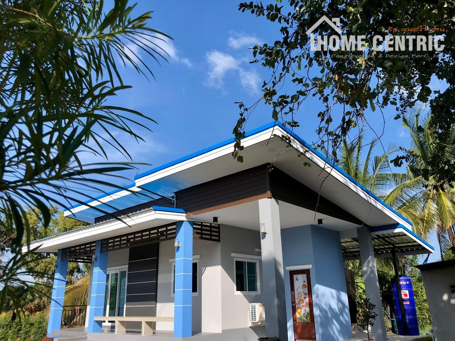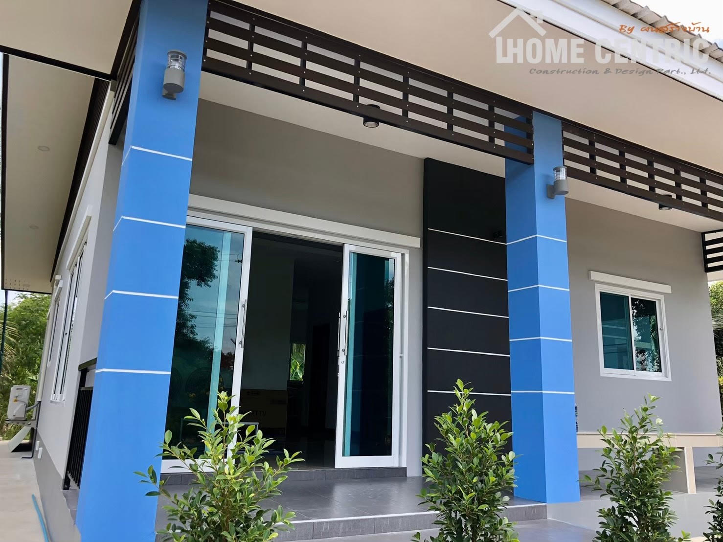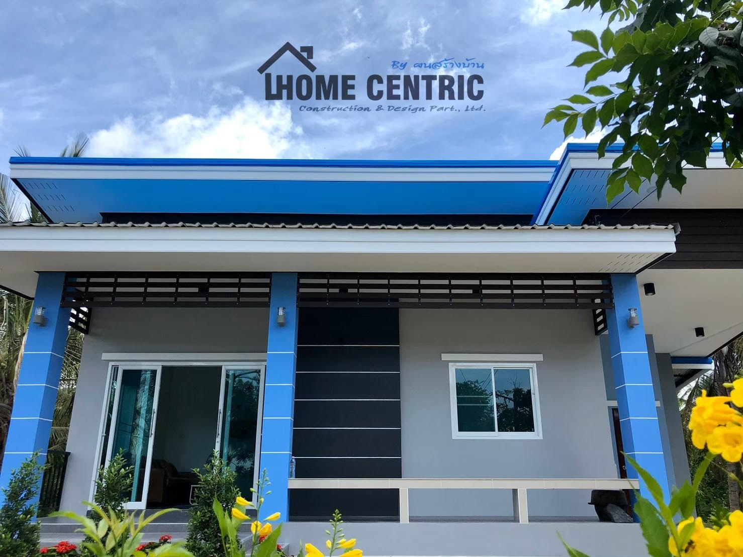 บ้านชั้นเดียวทรงโมเดิร์น ตกแต่งในโทนสีฟ้าสดใส 3 ห้องนอน 2 ห้องน้ำ พื้นที่ 95 ตร.ม.