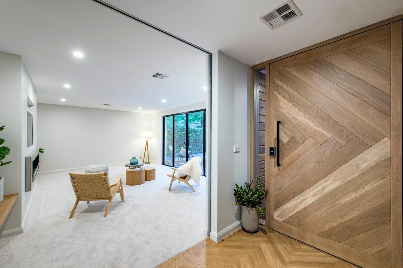 ที่บริเวณพื้นที่ชั้นล่างของบ้าน จะถูกแบ่งเป็นห้องทำงานเล็ก ๆ รวมถึงห้องออกกำลังกายอีกด้วย ซึ่งยังคงตกแต่งในโทนสีขาวสว่าง