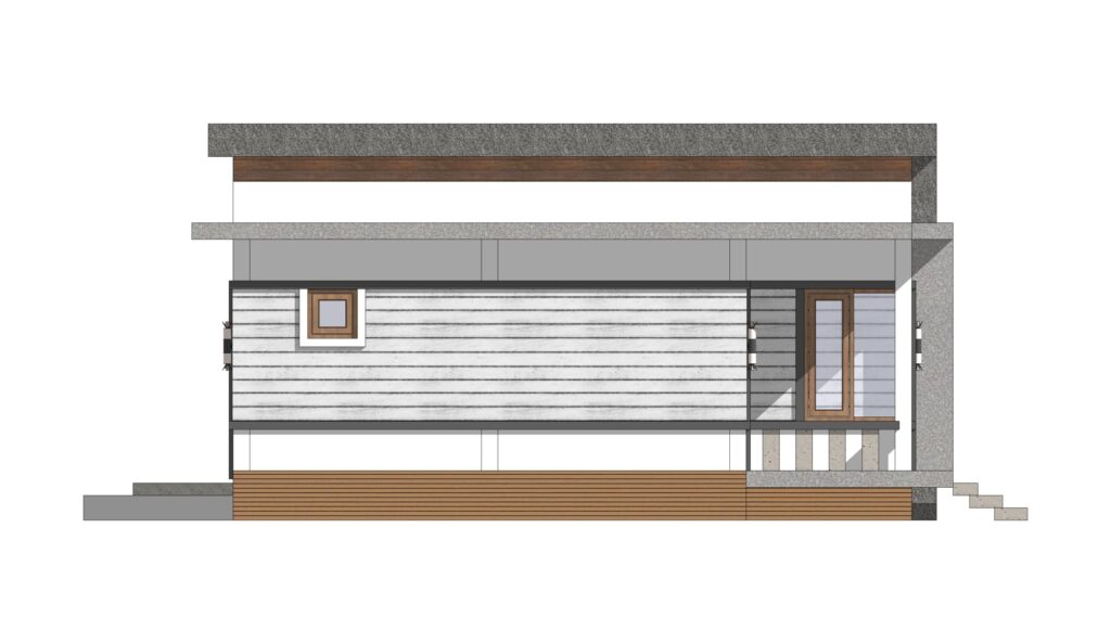 ผู้ออกแบบได้เพิ่มแปลงปลูกต้นไม้คอนกรีตไว้ทางด้านหลังเพื่อเพิ่มความสดชื่นด้วยสีเขียวให้กับบ้านหลังนี้