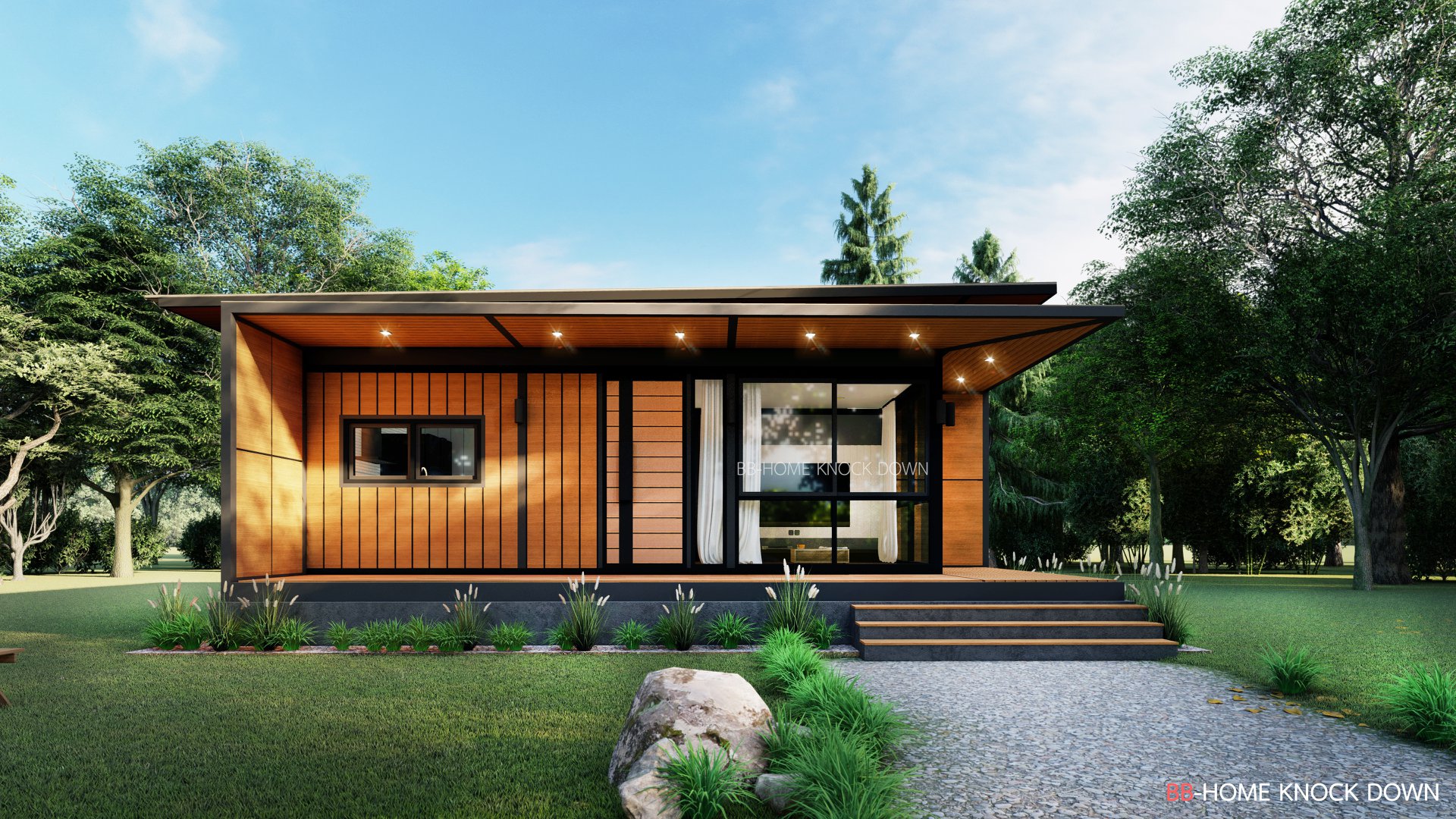 โดยบ้านน็อคดาวน์หลังนี้เป็นบ้านที่มีดีไซน์ในแบบโมเดิร์น ตัวบ้านลักษณะแบบทรงกล่องสี่เหลี่ยมเรขาคณิต จึงให้รูปลักษณ์ของบ้านที่ดูทันสมัย เหมาะกับไลฟ์สไตล์ของคนยุคใหม่ งานโครงสร้างของบ้านเป็นโครงสร้างเหล็ก ฐานของบ้านถูกยกขึ้นสูง จึงมั่นใจได้ว่าบ้านแข็งแรงแน่นอน
