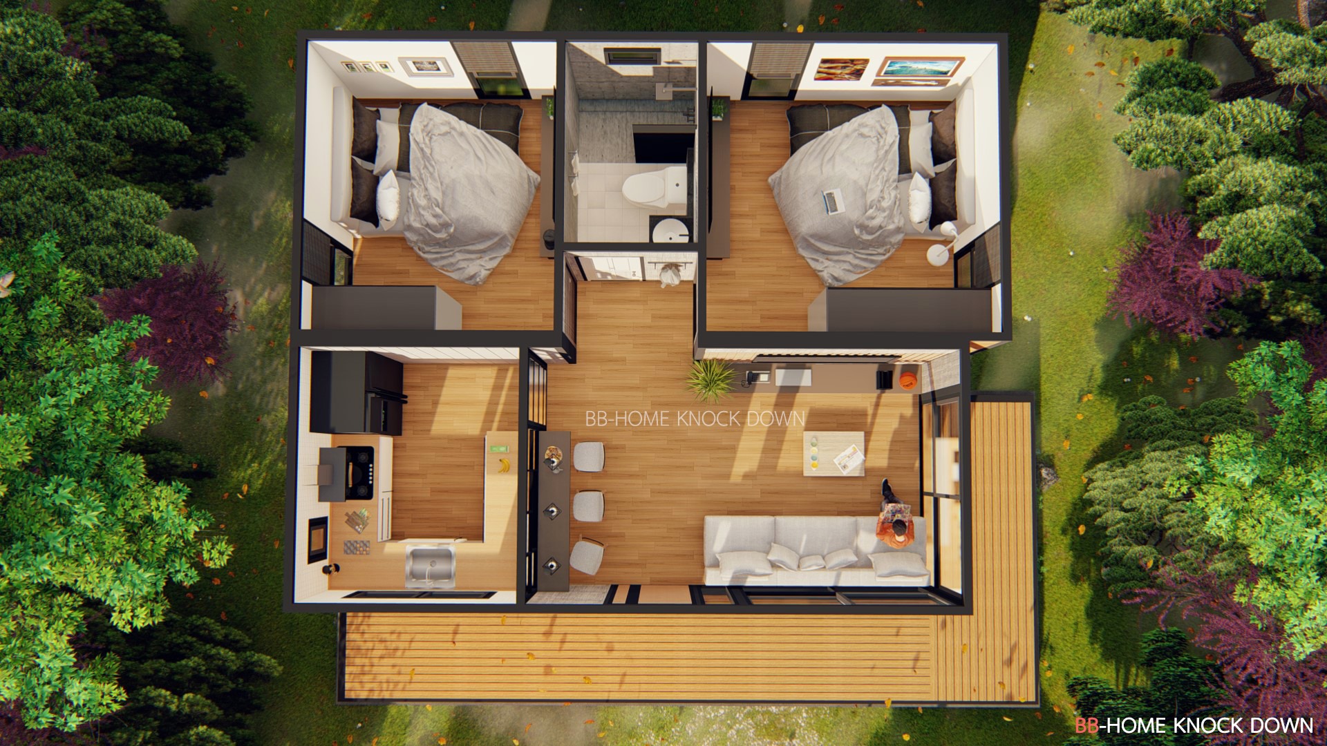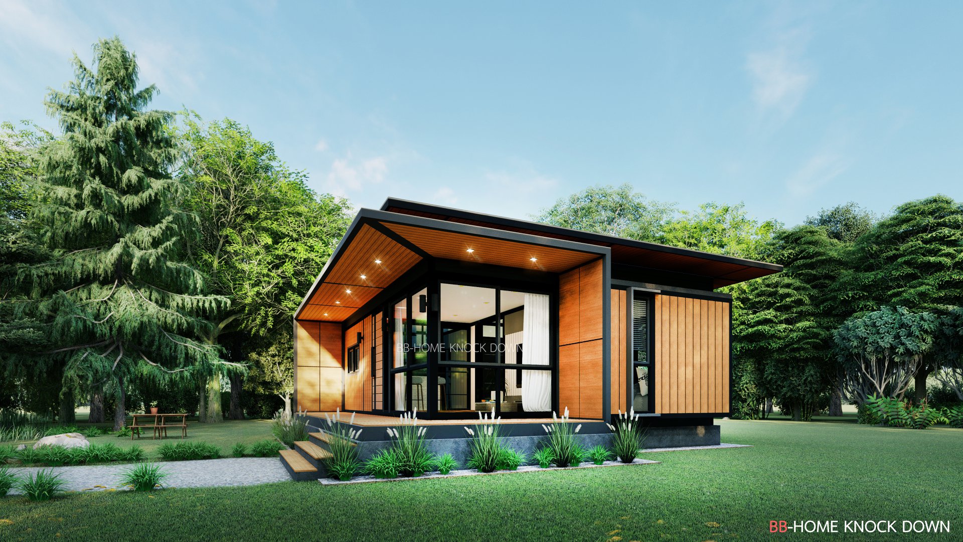 แบบบ้านน็อคดาวน์ทรงกล่อง ผลงานการออกแบบโดย BB-Home บ้านน็อคดาวน์ บ้านที่ถูกออกแบบและก่อสร้างด้วยวิธีการประกอบจากชิ้นส่วนสำเร็จรูป จึงเป็นบ้านที่สามารถก่อสร้างได้ง่ายและรวดเร็ว ทำให้สามารถประหยัดเวลารวมถึงค่าใช้จ่ายไปได้มาก