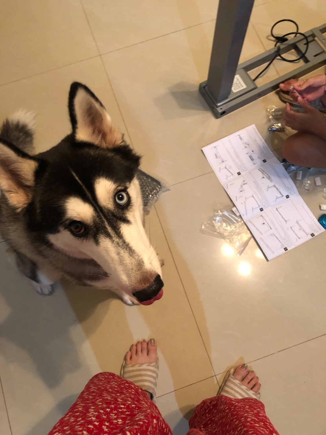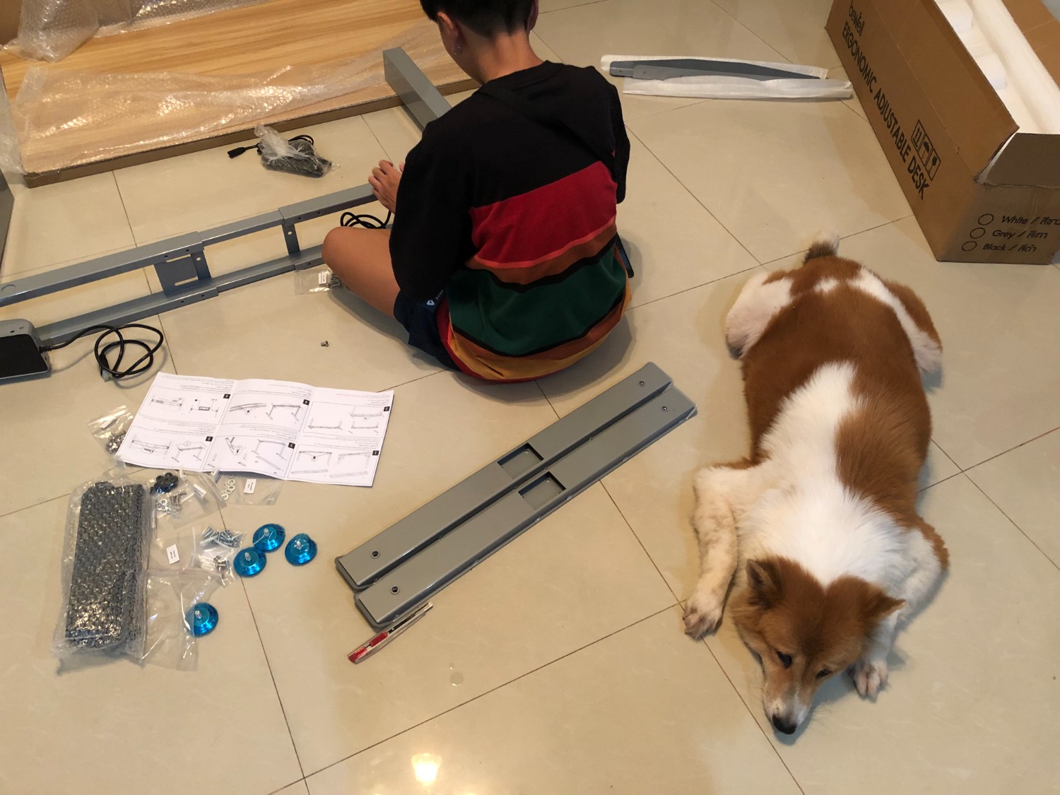 ประกอบเสร็จแล้วหมาเราตกใจด้วยค่ะ เราแอบปรับระดับโต๊ะตอนนางกำลังมอง นางเห่าใหญ่เลย น่าจะงงที่อยู่ๆโต๊ะปรับระดับได้เอง