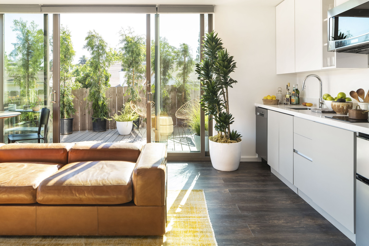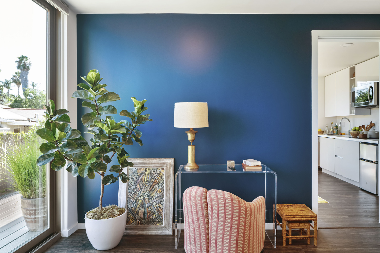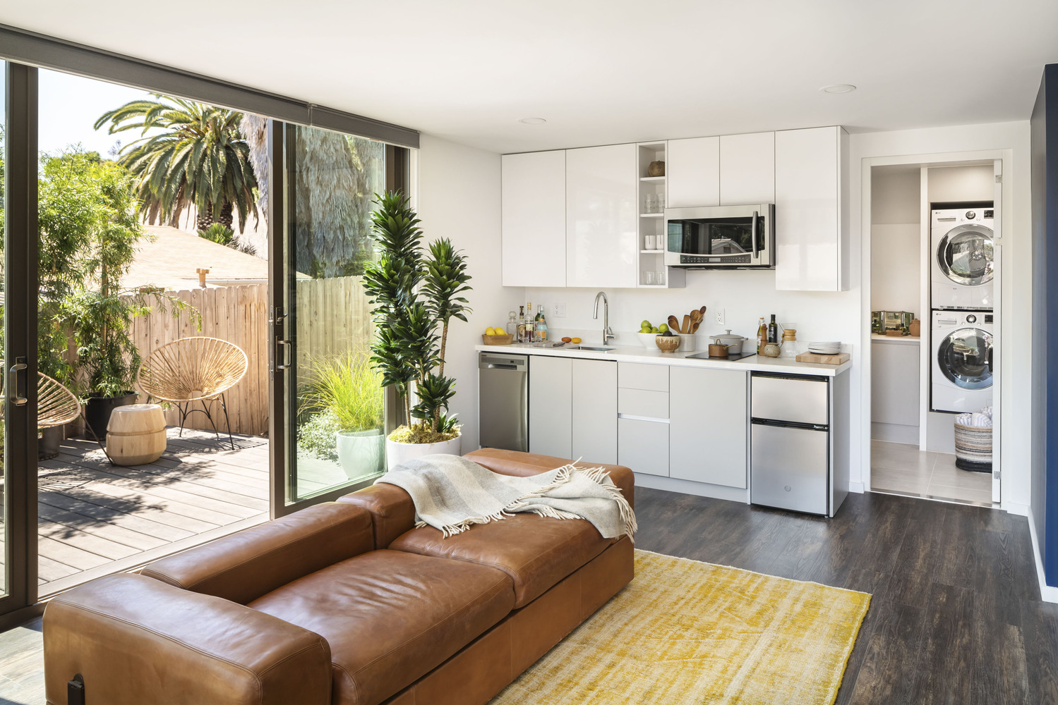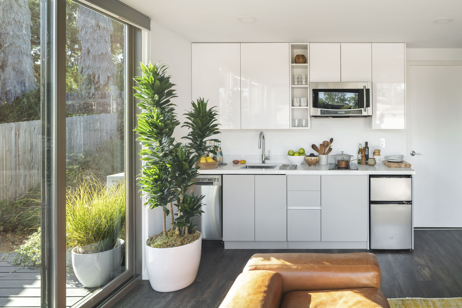 เมื่อเราเข้ามาภายในบ้าน เราจะพบกับห้องโถงหลักของบ้าน ซึ่งเป็นห้องที่แบ่งพื้นที่เป็นทั้งส่วนพื้นที่นั่งเล่นและพื้นที่ส่วนครัว