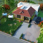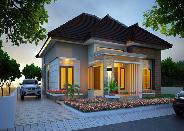 สำหรับบ้านหลังนี้ ออกแบบในสไตล์ร่วมสมัย ดีไซน์หลังคาเป็นชั้นๆ ให้พอดูเป็นมิติ ผนังด้านนอกใช้โทนสีเทา แทรกด้วยวัสดุหินและอิฐตัดกัน จัดดอกไม้พุ่มเตี้ย เพิ่มสีสันสดใสให้ดูสดใส