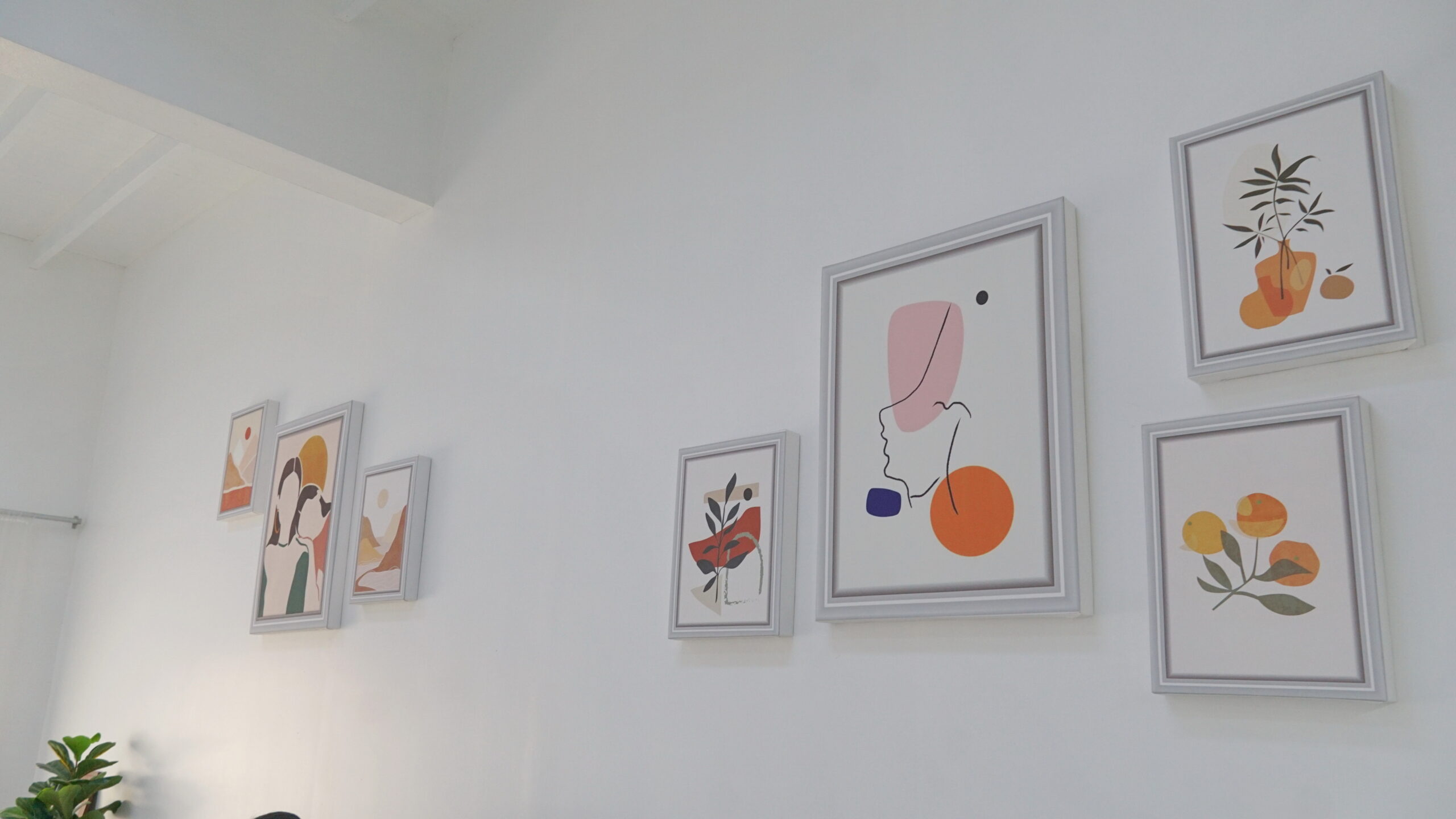 ภายในร้านจะมีลักษณะแคบยาวแบบตึกแถว แต่ด้วยการตกแต่งในโทนสีขาวแบบมินิมอล จึงทำให้ร้านดูปลอดโปร่ง ไม่ดูอึดอัด นอกจากนี้ยังได้แสงสว่างจากโคมไฟเพดานแบบพิเศษมาช่วยเพิ่มแสงสว่างให้ภายในร้านอีกด้วย