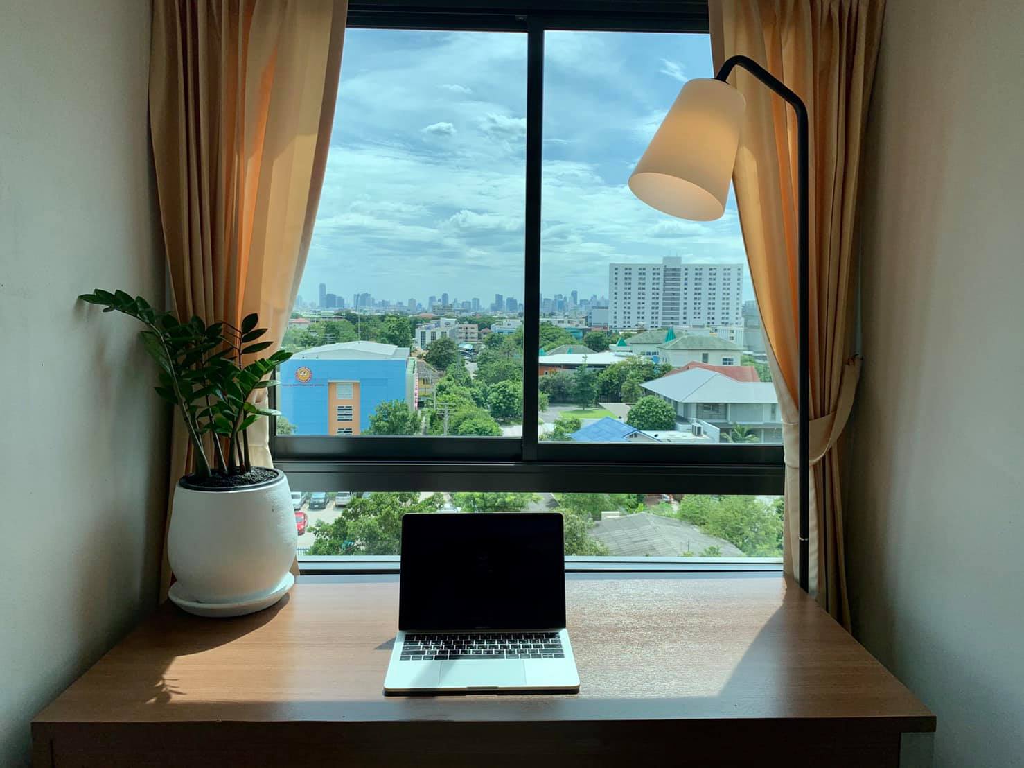 บริเวณโต๊ะทำงานมีพื้นที่กำลังดี มีโคมไฟที่ให้แสงส่องสว่างในการทำงานแม้ยามค่ำคืน ที่ด้านหน้าก็ให้วิวด้านนอกที่สวยงามไม่น้อยเลย