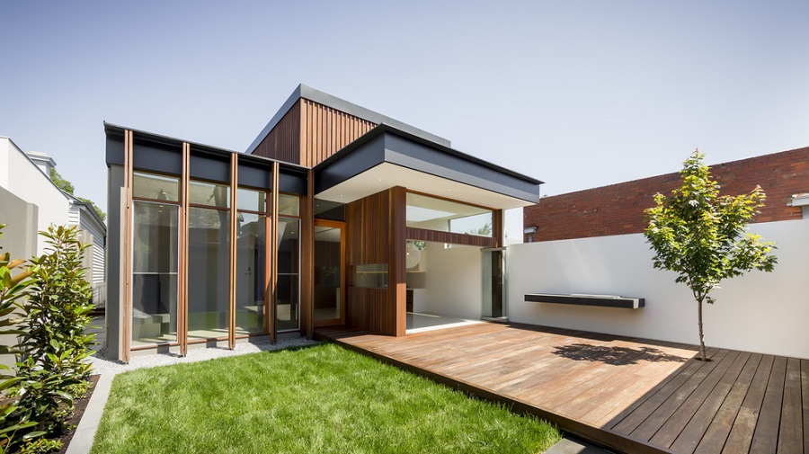 เฉลียงไม้ที่อยู่ด้านหลังของบ้านหลังนี้ มีทั้งความเป็นอิสระและความเป็นส่วนตัว เปิดโอกาสให้ผู้อยู่อาศัยสามารถดื่มด่ำกับธรรมชาติจากสนามหญ้าหลังบ้าน โดยที่ไม่ต้องกังวลสายตาจากเพื่อนบ้าน หรือคนที่เดินผ่านไปมา