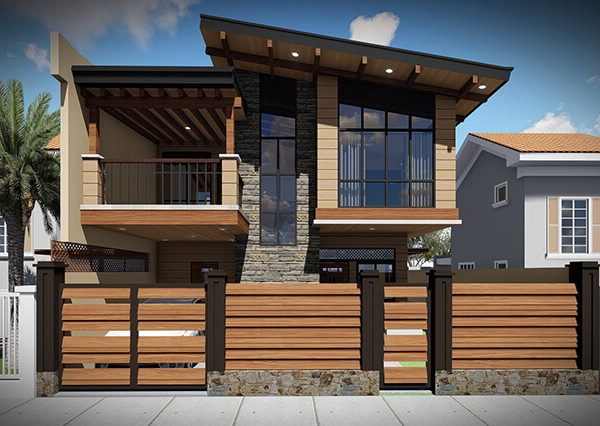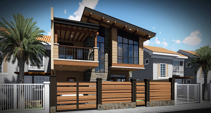 แบบบ้านโมเดิร์นสองชั้น เน้นวัสดุธรรมชาติและโทนสีน้ำตาล 3 ห้องนอน 2 ห้องน้ำ พื้นที่ใช้สอย 118.36 ตร.ม.