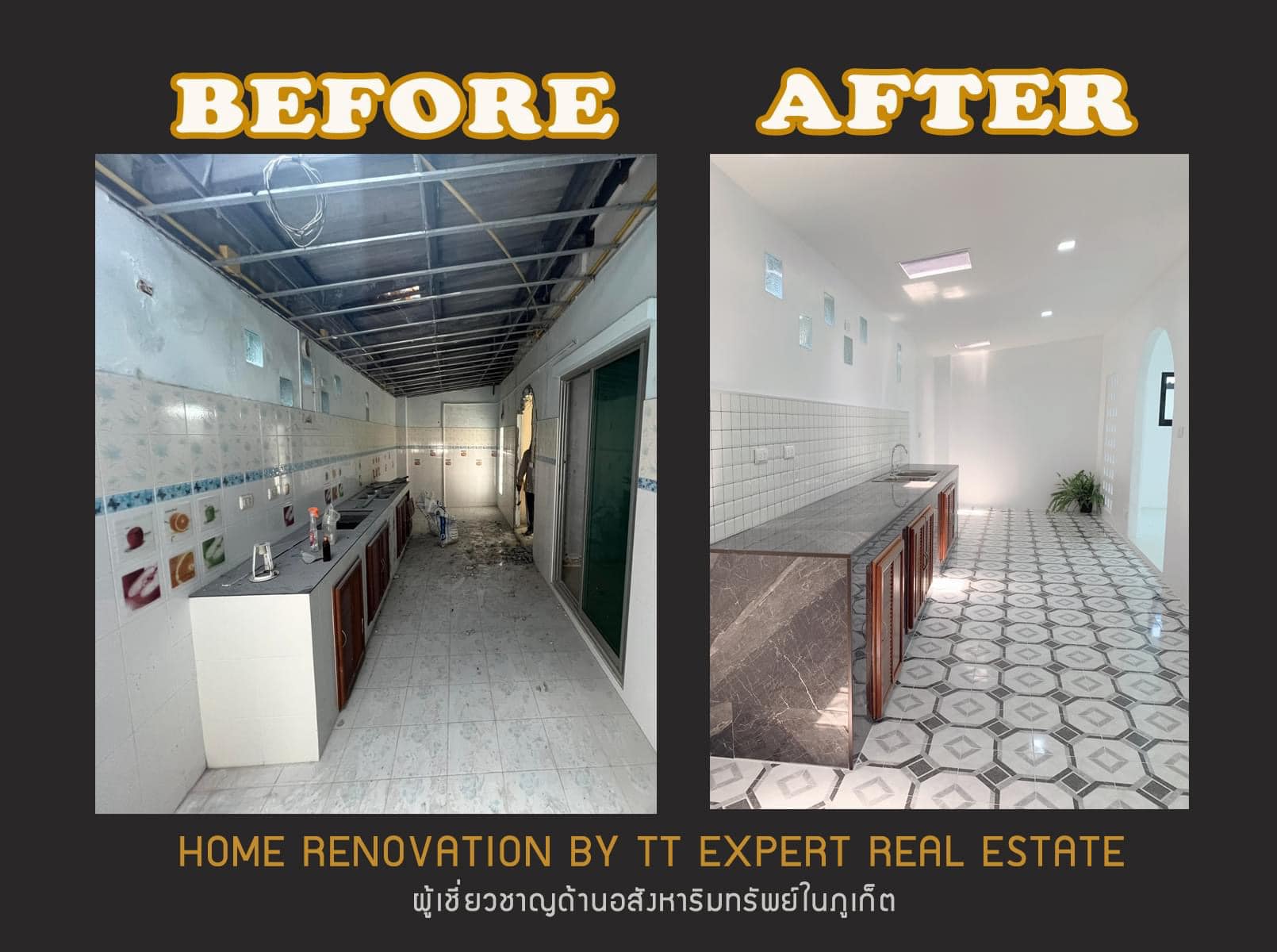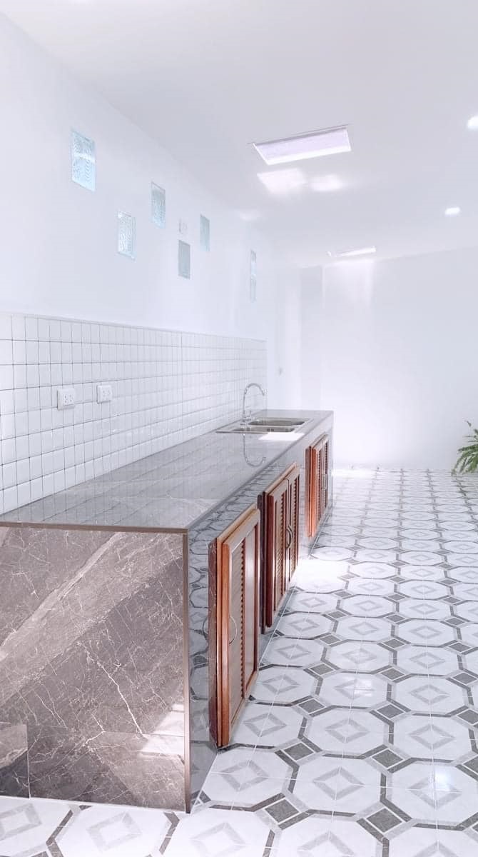 ภายในห้องครัวที่ถูกปรับปรุงใหม่ มีความทันสมัยมากขึ้น เพดานห้องครัวถูกติดตั้งหลังคาแบบสกายไลท์ จึงช่วยเพิ่มแสงสว่างให้ห้องครัวได้อีกนิด