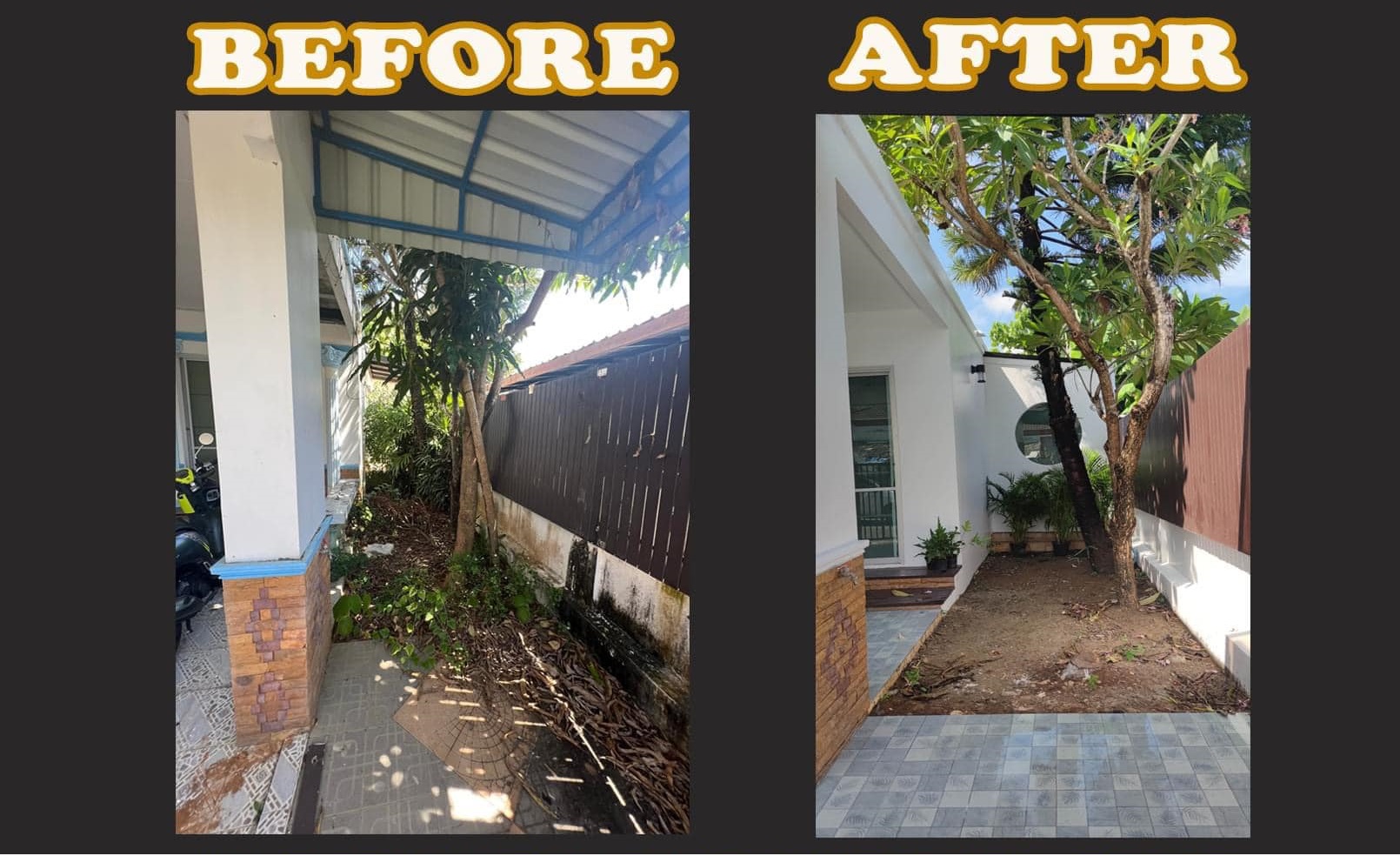 พื้นที่ด้านข้างได้รับการดูแล จัดการกับซากใบไม้ กิ่งไม้ต่าง ๆ ทำให้ได้พื้นที่โล่ง ๆ ที่จะสามารถใช้เป็นพื้นที่จัดสวนได้ในอนาคต